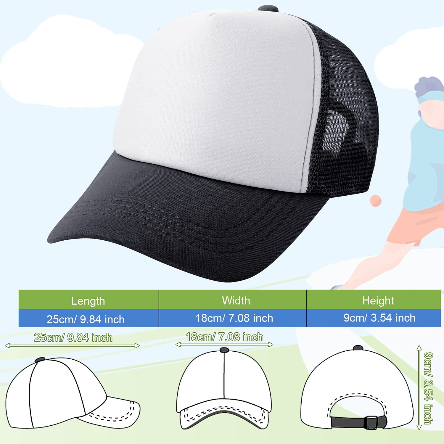 • Moderate specifications: The weight of this product is about 55 g, which is very light. When you go out, wear a truck hat, you can easily resist the glare of the sun. Of course, you can also put the hat in your bag and use it whenever you need it.