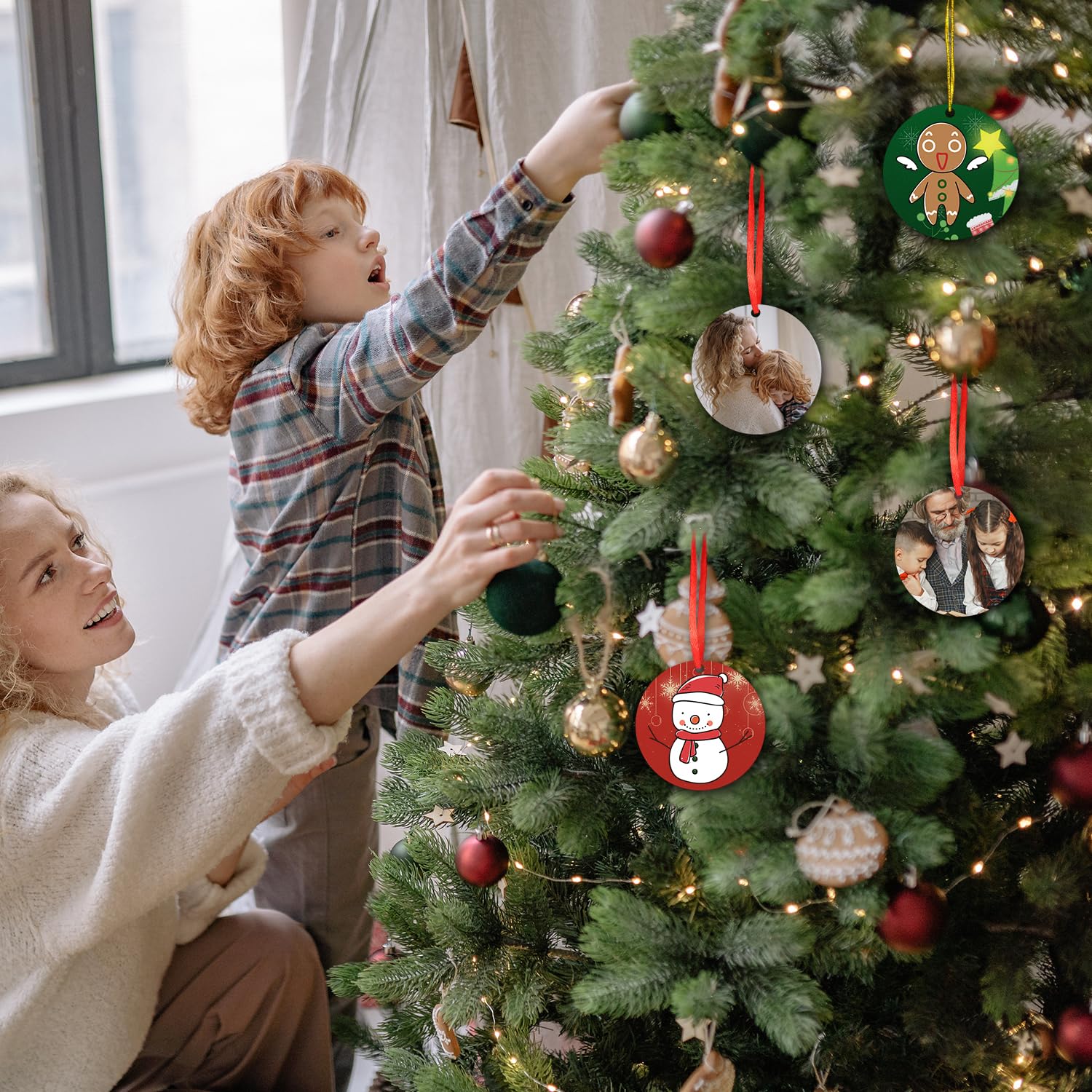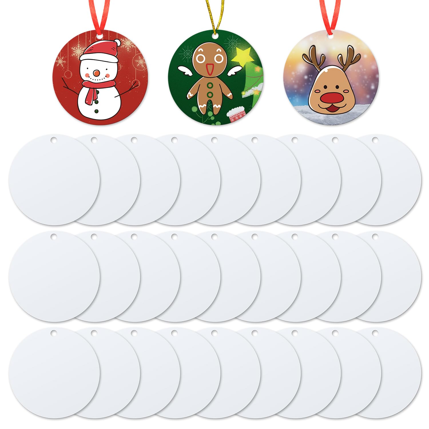 30pcs Sublimation Ornament Blanks, 3 inch Round MDF Personalized Sublimation Blanks Pendants Double Side Christmas Tree Discs Hanging Ornaments DIY Crafts Gift Decoration