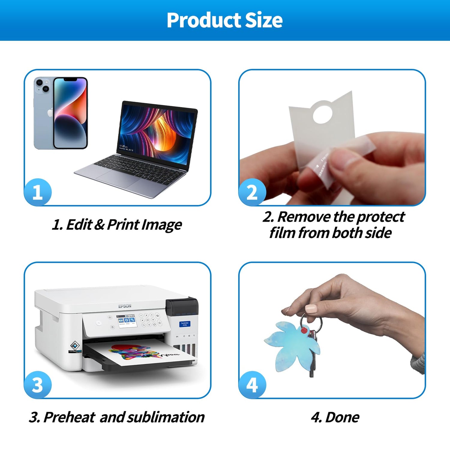 - 【Double-Sided Protection】Our acrylic sublimation name tags come with protective film on both sides to prevent scratches and dirt, feature a premium sublimation coating and a clear protective film with no glue residue. Enjoy bright, crisp colors on your finished nameplates. Be sure to remove all protective films before use.(Note: Only one side is suitable for sublimation; the other side lacks a thermal transfer coating.)