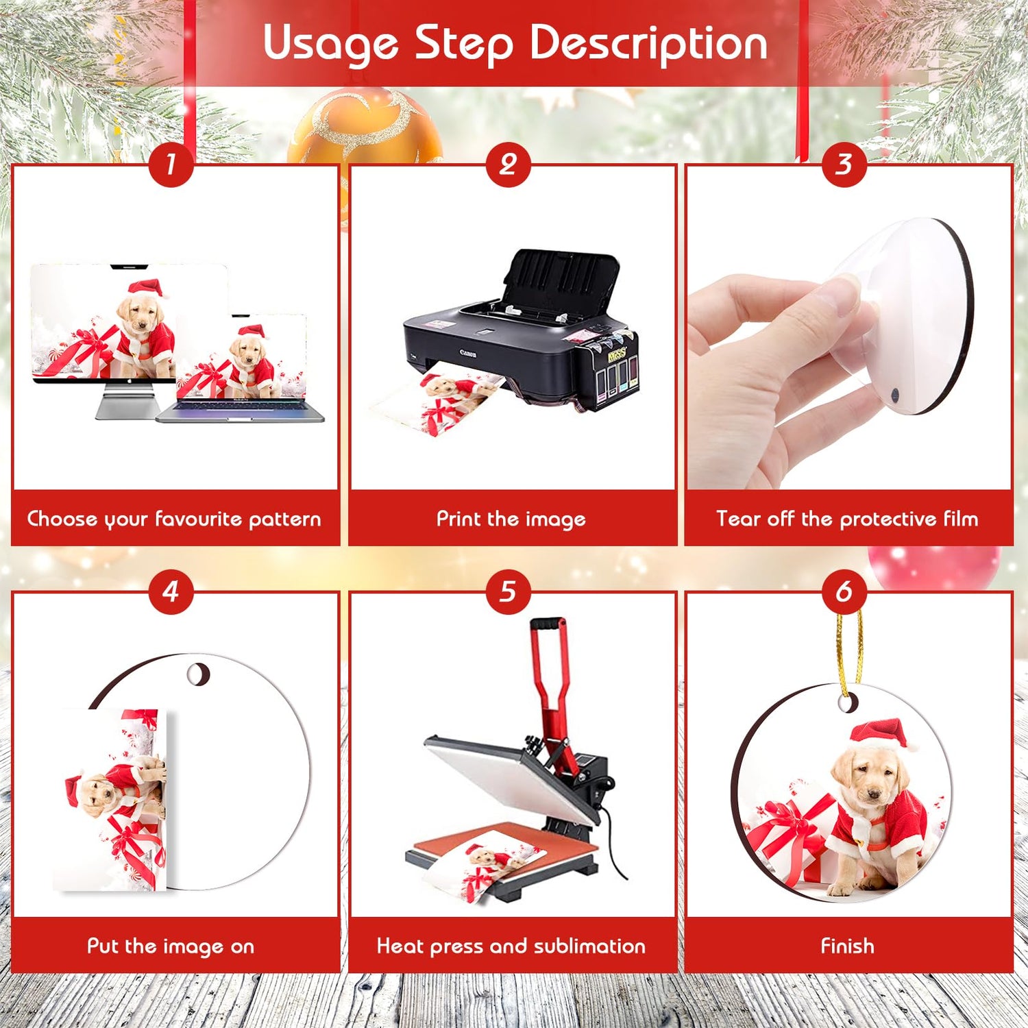 - 【DIY Christmas Tree Ornament】You can design sublimation decorations, which are perfect as unique custom gifts for friends and family. You can print a commemorative pattern on the smooth side, and then use a marker to leave a blessing on the frosted side.