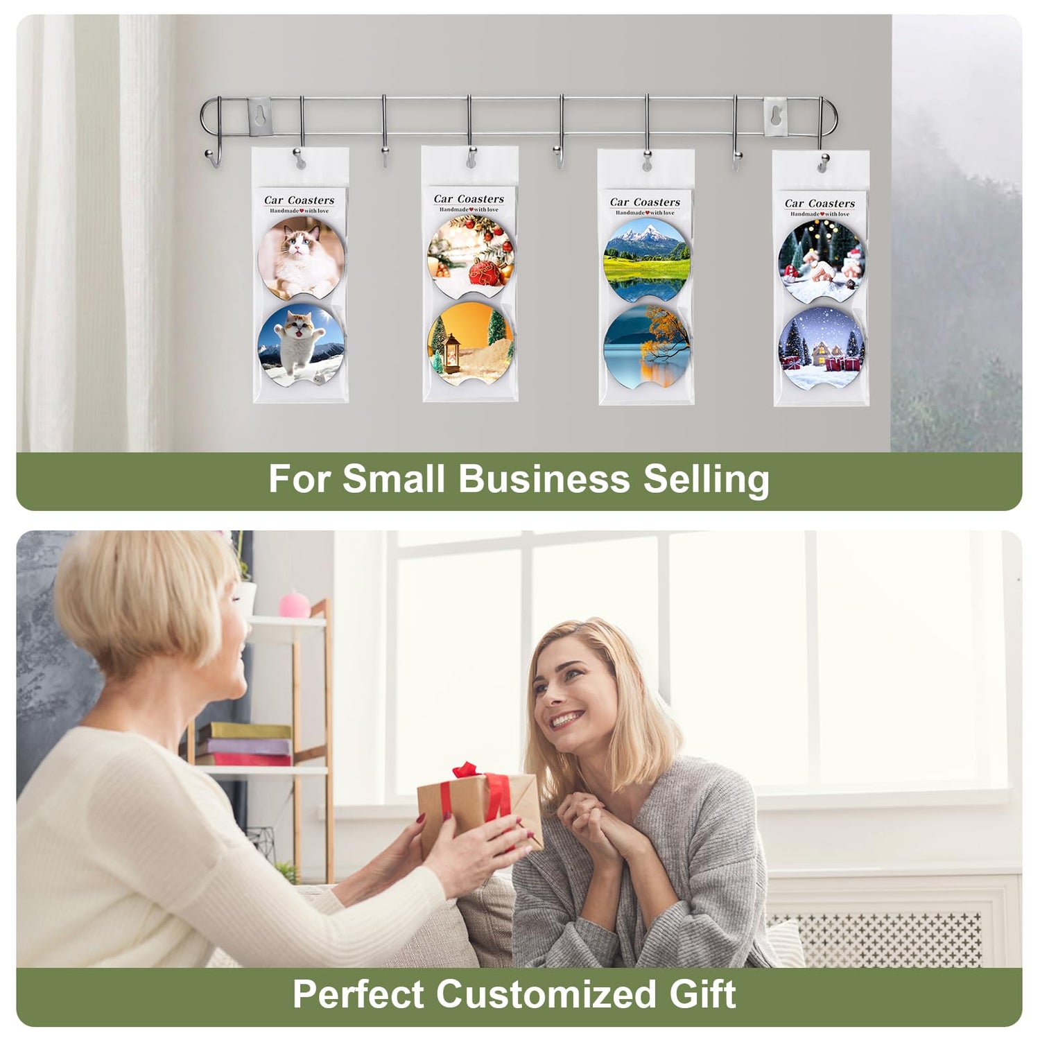 - ✅【Car Coaster Packaging】:Car coaster packaging for selling includes 20pcs sublimation blank car costers,10pcs sublimation car coasters display cards and 10pcs self-sealing bags,perfect for display your DIY crafts.