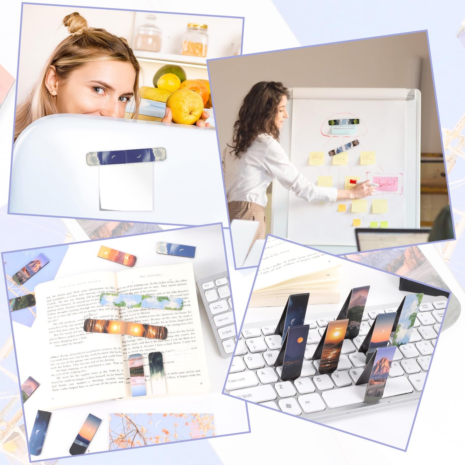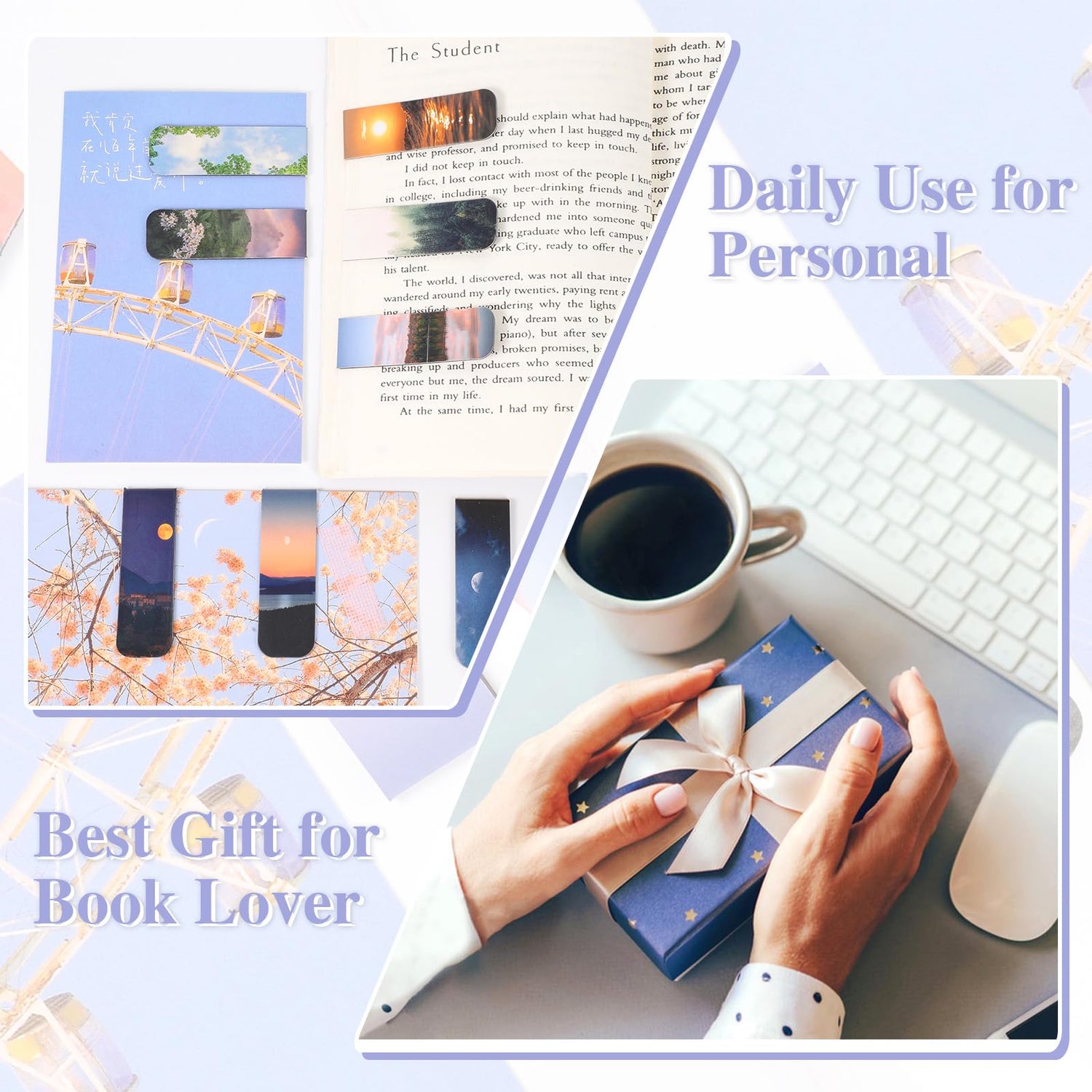 - ❤【Easy to use】The beautiful landscape bookmarks can be folded in the middle and double-sided magnetic attraction, you can use bookmark to marking reading page or decorating your book, fitting for people who love reading or teathers students.