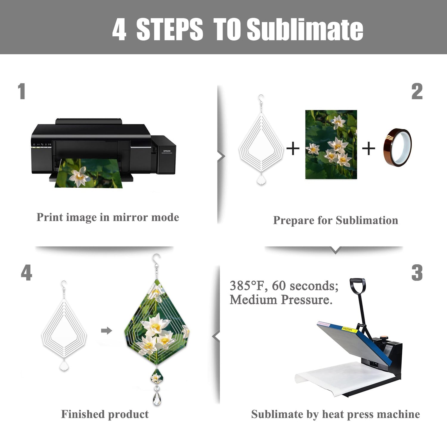 - 【Perfect Sublimation Coating】Our 3D Double Sided Wind Spinners come with premium sublimation coating that promise the sublimation print colors bright and won’t fade. It can be personalized both sides with single or 2 different designs. Heat press setting 385°F for 60 seconds; Medium pressure.