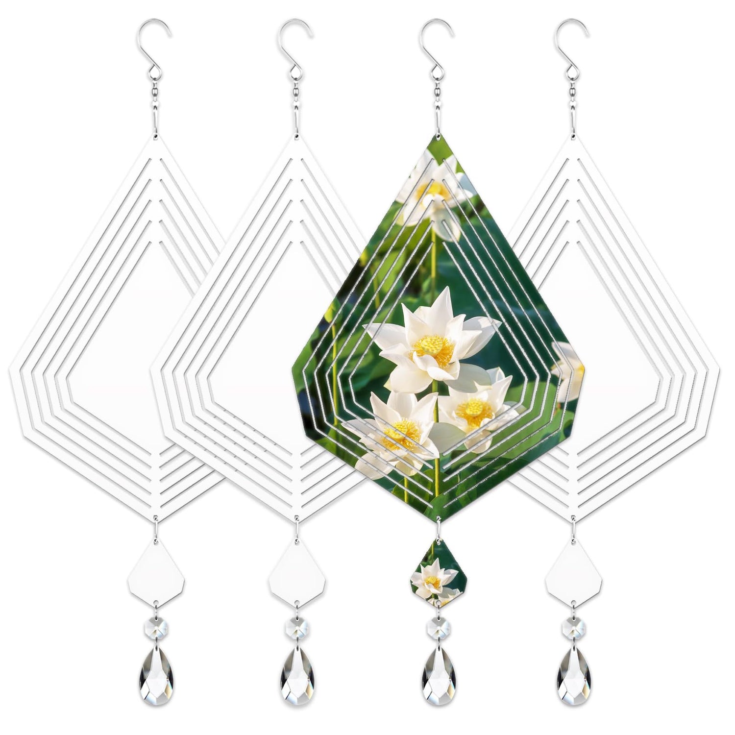 4Pack 11inch Sublimation Wind Spinner Blanks 3D Aluminum Metal Wind Sculpture Kinetic Spinners for Yard and Garden Indoor Art Ornaments Hanging Decoration (Diamond)