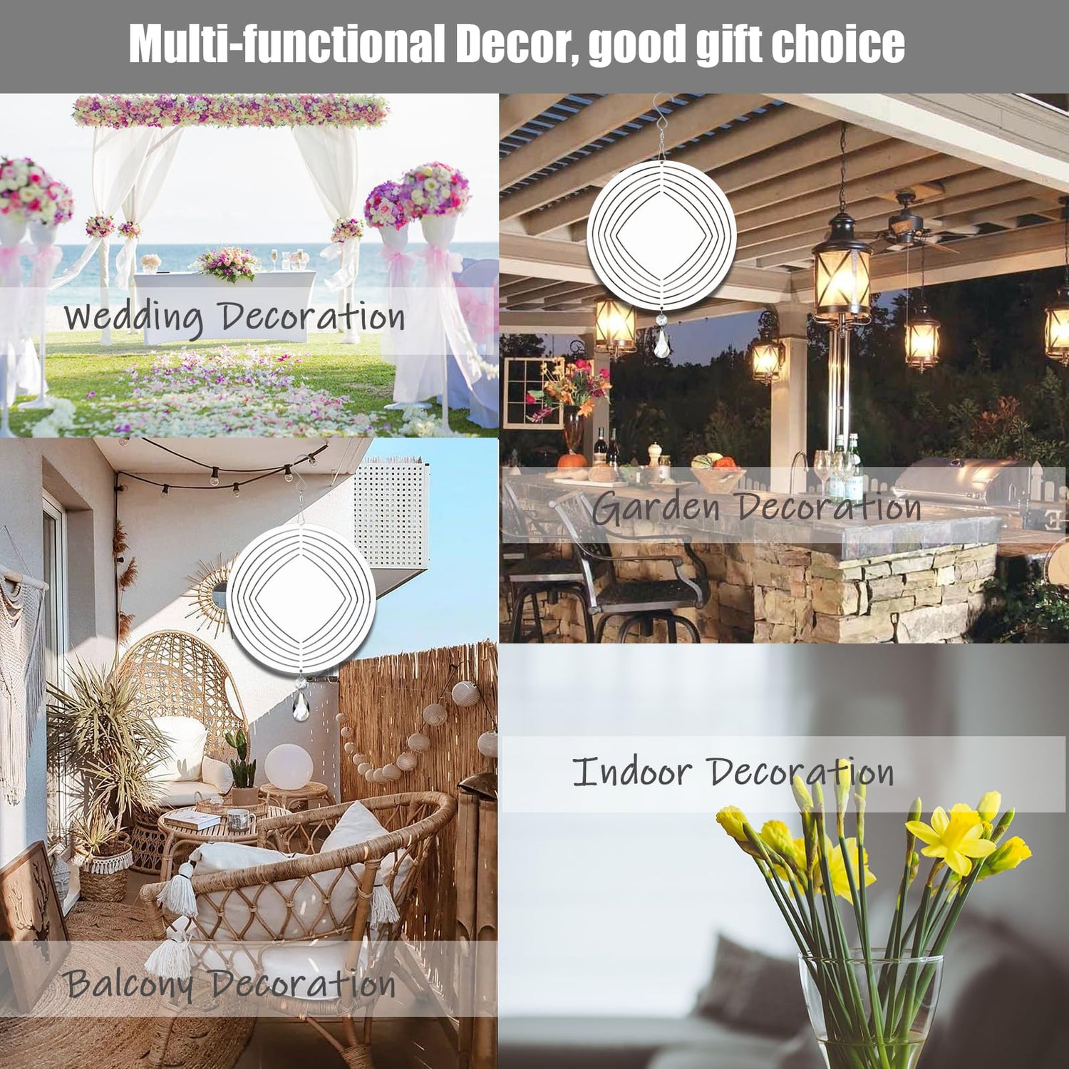 - 【Product Included】Big Wind Spinner Sets: 4pcs sublimation wind spinners; 4 pcs 360°rotating hook;4pcs K9 grade crystal glass pendant.