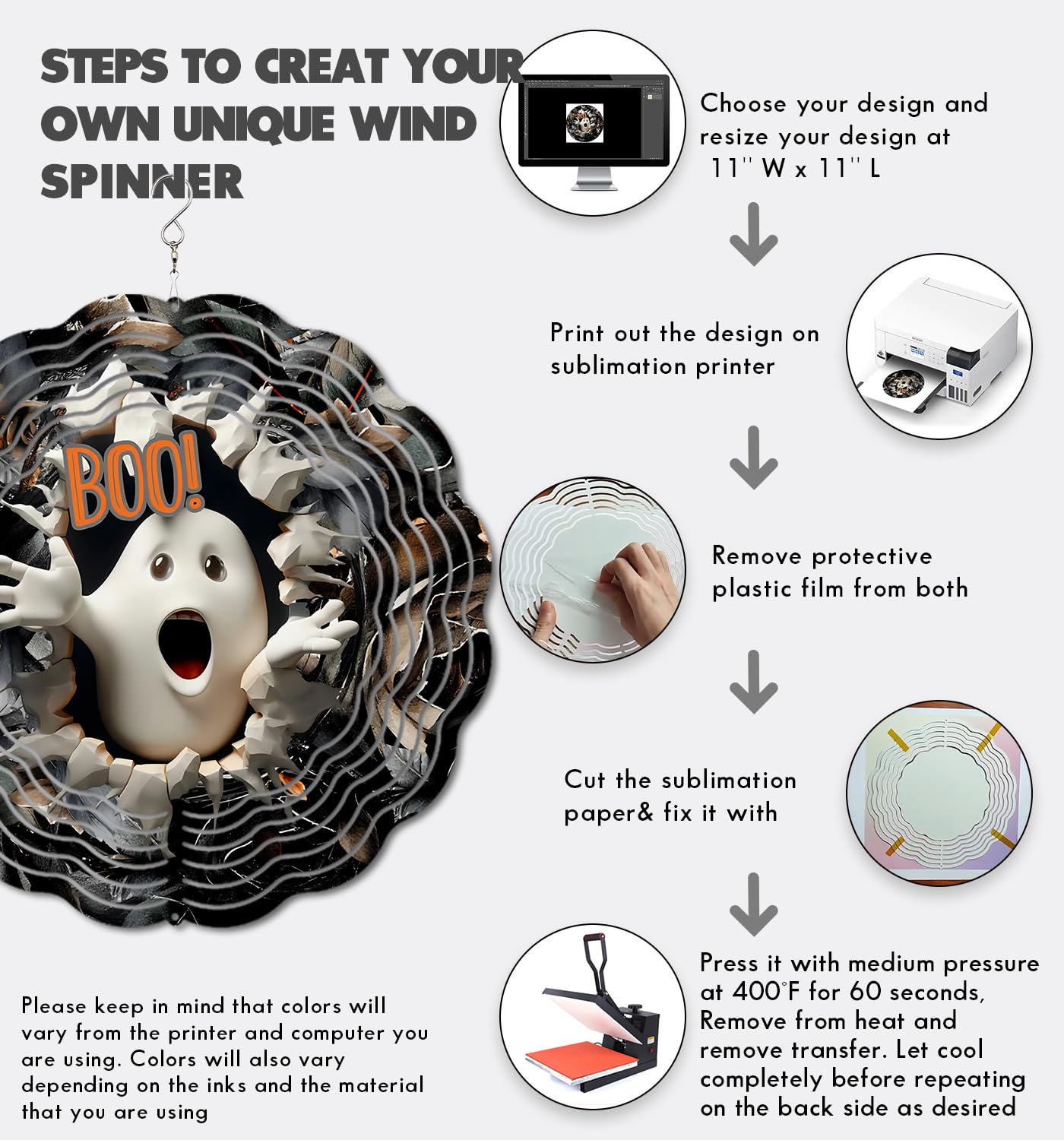 Warm Tips: Please allow 1-3mm tolerance due to manual measurement. In order to make the sublimation wind spinner cleaner, please avoid using blurry or out of focus image, the photo should be over 2000 pixels as much as possible. The color may exist slight difference due to different screen display. If the sublimation paper is slow-drying and the ink is not dry before printing, or the sublimation paper is damp, the print will be blurry.