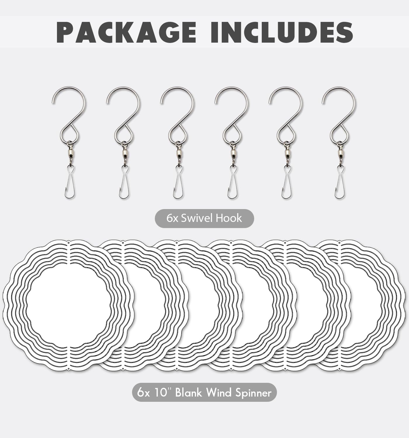 6 Pack 10 inch Sublimation Wind Spinner Blanks, 2 Sided Printable Sublimation Stainless Steel Metal Wind Powered Kinetic Sculpture for Yard and Garden, Heat Press Transfer Sublimation Blank Products