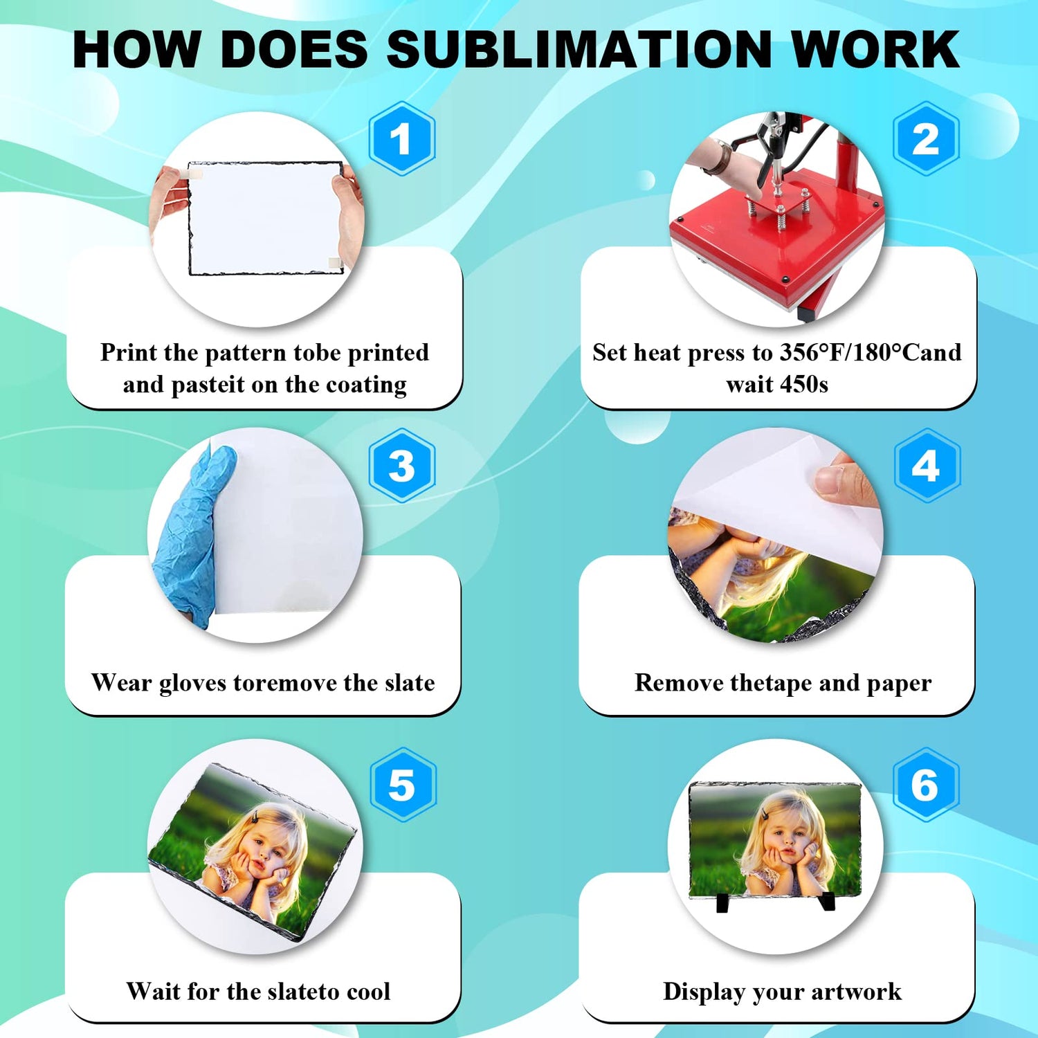 - DIY FUNCTION: Our personalized photo stone rock slate adopts the sublimation technology, can directly print photos onto the stone rock slate, with a gloss that is not easy to fade. (Note:Only white is coated The surface can be sublimated) A practical gift for your loved one. The temperature setting is recommended to be 180°C, which is about 354°F, and the sublimation time is recommended to be 450~600 seconds