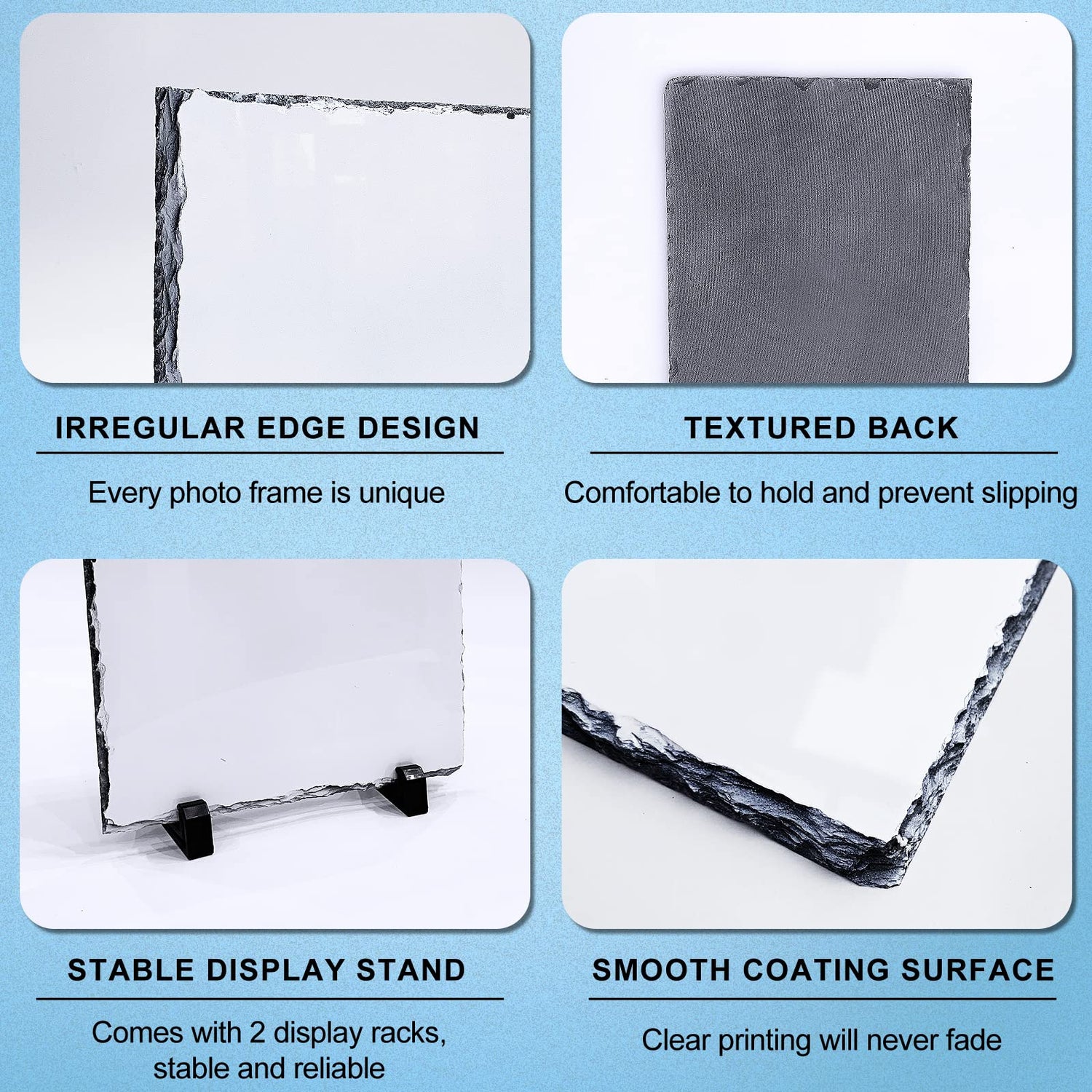 6 Pack Sublimation Slate Blanks,Heat Thermal Transfer Sheet Stone Photo Frame DIY Sublimation Blank with Display Holder for Desktop Souvenir Custom Design Work