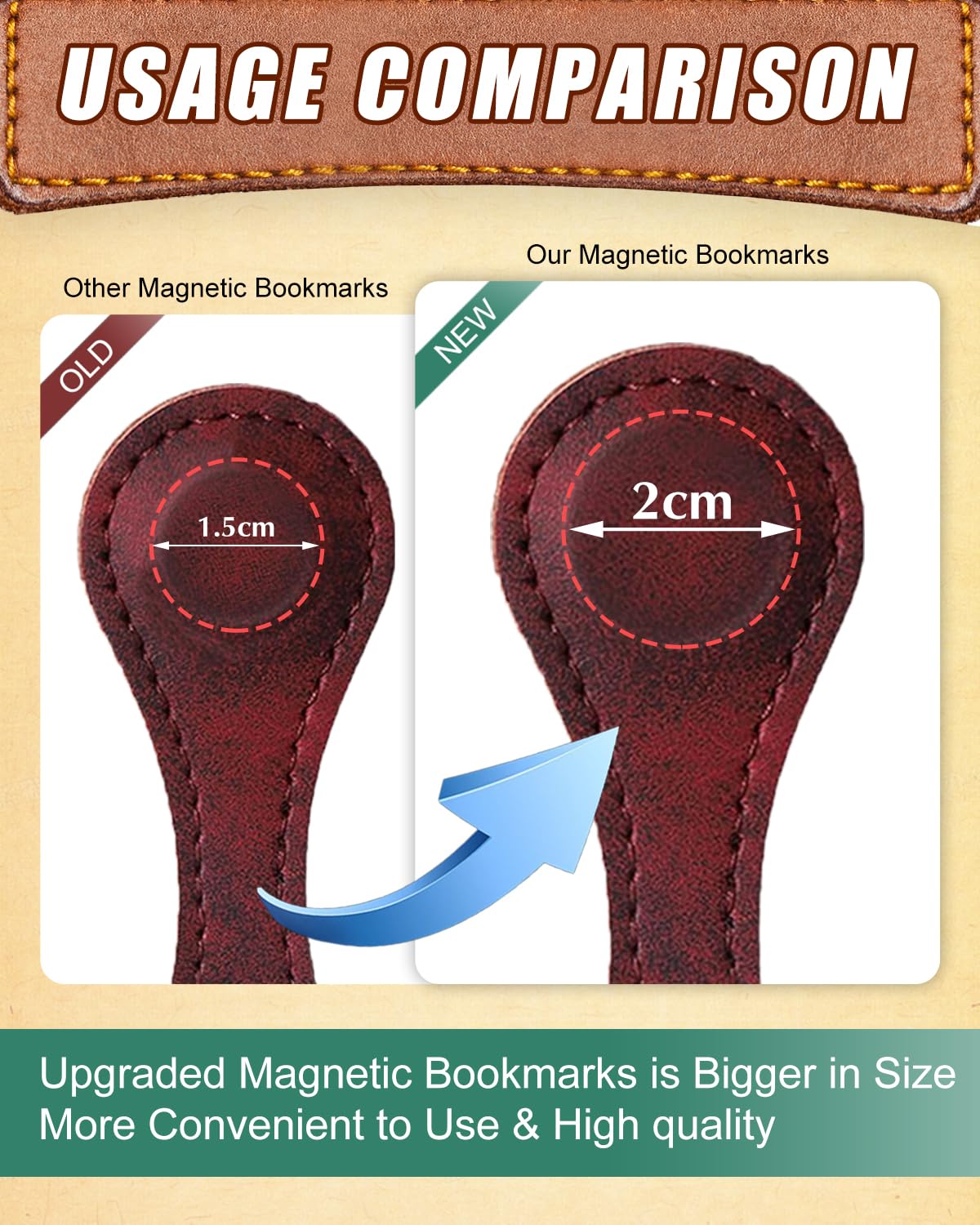 - 【Vintage Design】 You will receive 6 Pcs magnetic leather bookmark clips. This is the perfect reading bookmark for readers who prefer paper books. The book markers for reading has a sophisticated vintage style design with fine and neat stitching. Strong magnets on both sides allow you to stick to the page you want without slipping or sliding