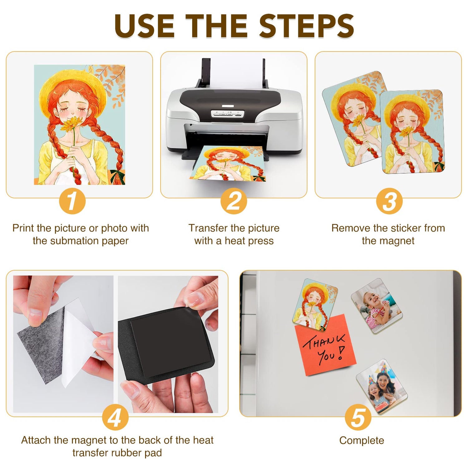- 【Material】Sublimation Magnet Blanks are made of Rubber, It is a high-quality heat transfer printing material that allows you to easily print your favorite patterns, and it is not easy to fade or wear out. Note:The soft magnets and rubber pad are separate and need to be pasted together after sublimation.