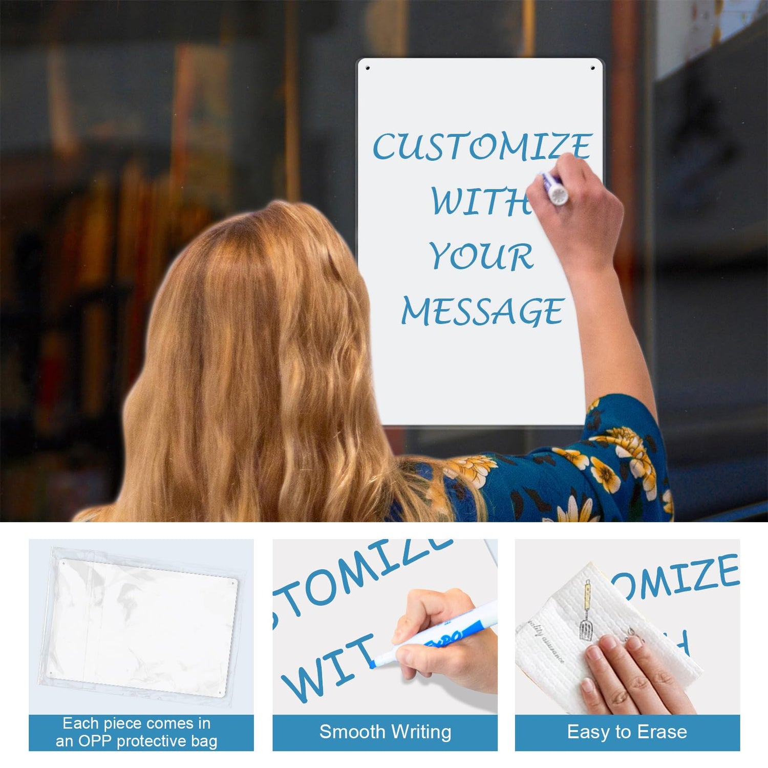 Ayifan 4-Pack White Blank Sign,Blank Metal Tin Sign,12" x 8" Rustic Style for Home Decor, Business Use, Indoor Outdoor
