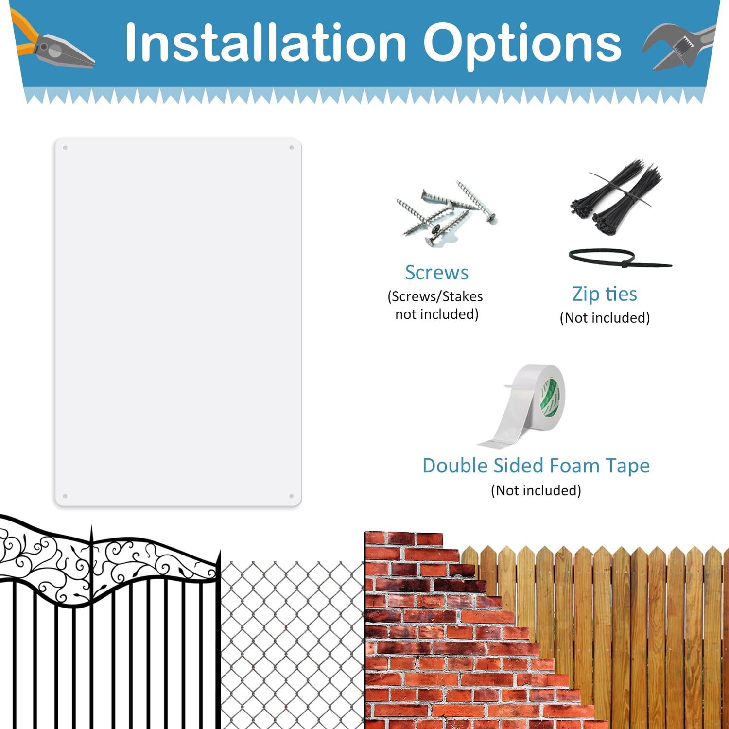 - Easy to Install: 4 pre-drilled holes for easy mounting on every surface including walls, fence, poles and gates. No need for adhesive or special equipment.It can be hung vertically.