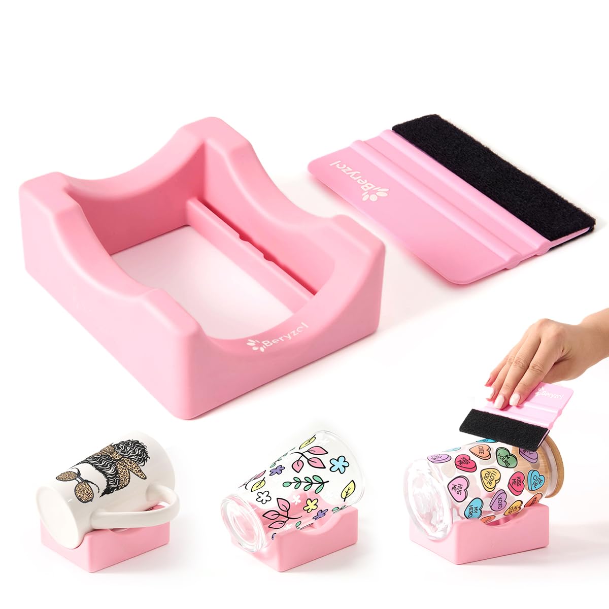 Beryzol Silicone Cup Cradle, Cup Cradle for Tumblers Use to Apply UV DTF Decal/Apply Vinyl Decals - Keep Mugs in Place with Felt Squeegee