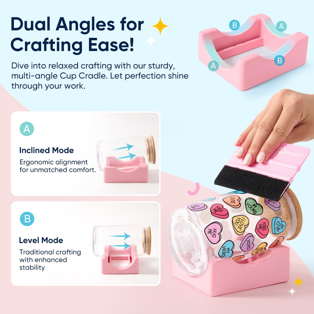 - Special Design: Different from traditional cup cradle, this silicone one comes with 2 angle modes. Level mode and inclined mode, intimately create for makers with different habbit. Perfect position to place tumblers on during UVDTF cup wraps / Vinyl Decals application, meet all your decal needs!