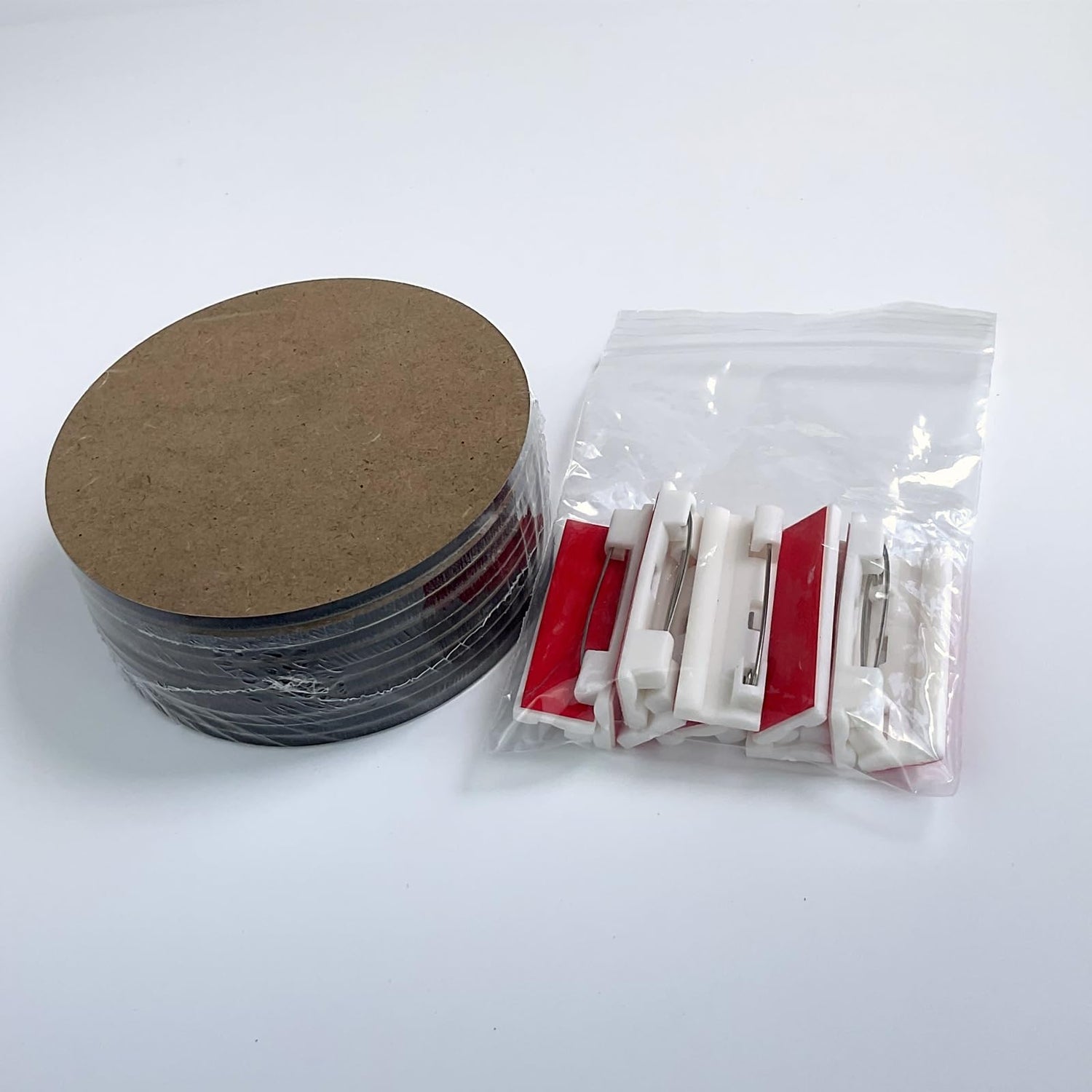 - Perfect quality wooden sublimation round buttons in single side printing and It comes with pins and adhesive as picture, after printing, you need to fix the pins onto it