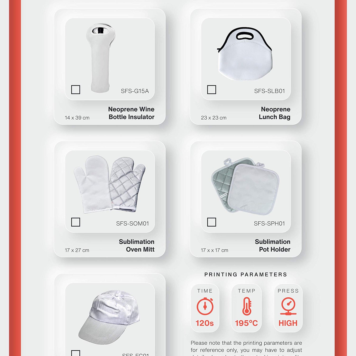 Details: NICE SET 2 OVEN MITTS Ref. SFS-SOM01 Sizes : 7´´ x 10´´ inches ( 17 x 27 cm ) Printable Size : 7´´ x 10´´ inches ( 17 x 27 cm ) Press Temperature : 180 C ( 365 F ) Press Time : 60-80 seconds Weight: approx. 80 gr 3oz ( 2 X 80 = 160 gr ) Color of the mitts: White & Grey Packing: Individual with transparent bag Description: Set of 2 Oven Mitts is a perfect personalized gift. You can print the image which you like on the front of the mitt. The operating method of printing such bag is dye sublimation, which features outstanding printing quality. You can dye-sub any of your photos images and logos on the Surface. Note: Any insert, photo or illustration shown in pictures is for demonstration purposes only and not included in the offer.
