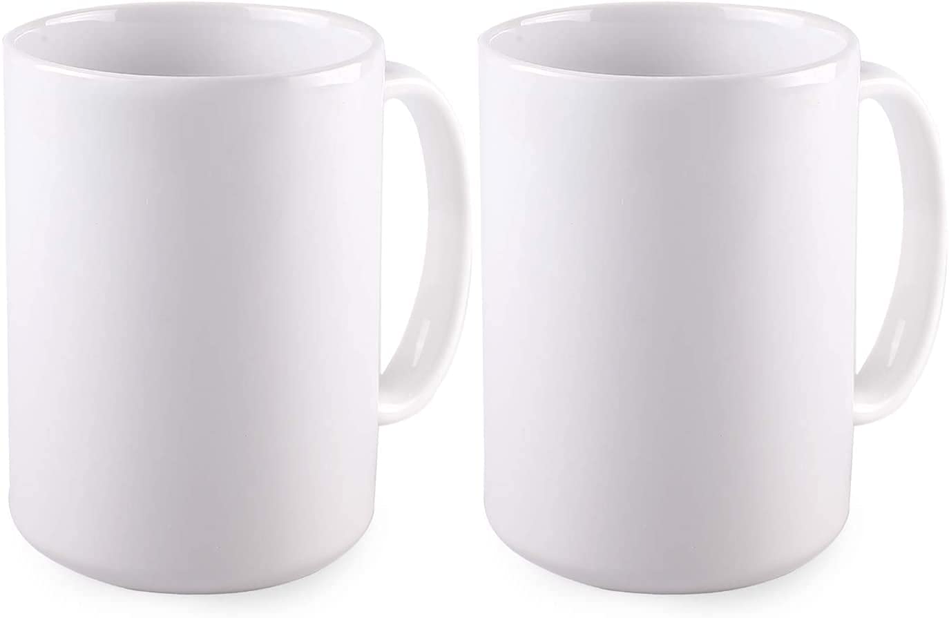BLUE RIBBON White Sublimation Plain Blank Coffee Mug Hot Chocolate Mugs, Ceramic Mugs Hot Cocoa Mugs Mug Sets Pack of 2 15 oz