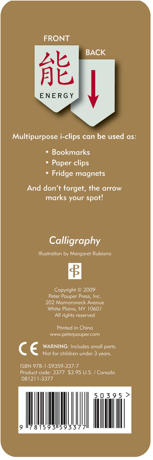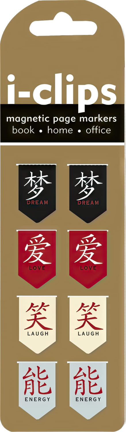 Details: The Chinese characters for Dream, Love, Laugh, and Energy enhance this set of 8 Calligraphy i-clips.