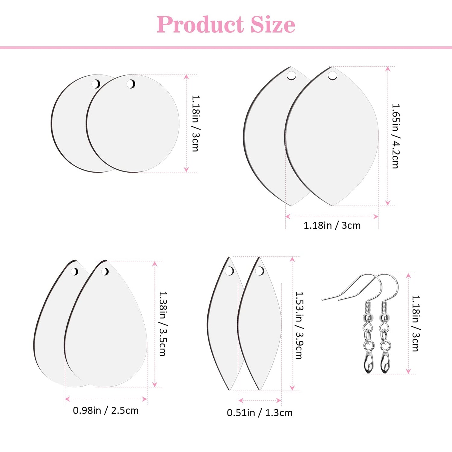 - 【Package Includes】You will get 16 pairs/32 pcs sublimation blank earrings, 4 shapes of drop-shaped, leaf shape, round shape, and long leaf shapes, 32 pcs earring hooks and 32 pcs jump rings, enough to meet your diverse needs or share with friends to enjoy the DIY funny time.