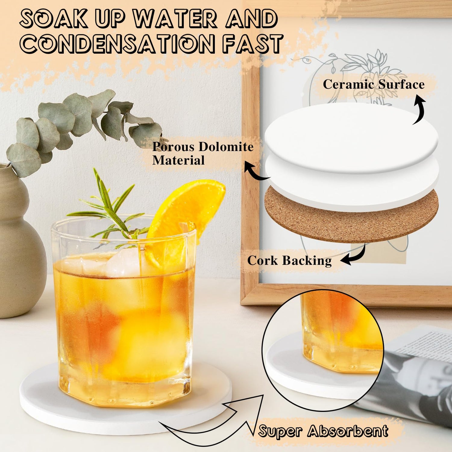 - THICKED CORK BOTTOM PADS: Protective layer for the tabletop, preventing the bottom of the cup from directly contacting the surface and causing scratches, heat marks, or water stains. It provides a soft cushioning layer that effectively reduces the impact and friction of the cup on the tabletop, keeping the surface intact and undamaged.