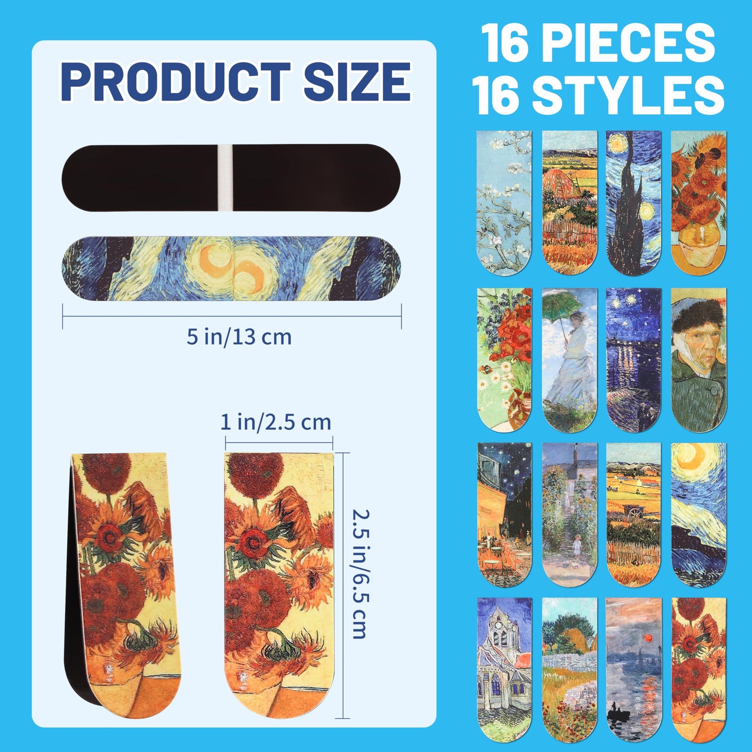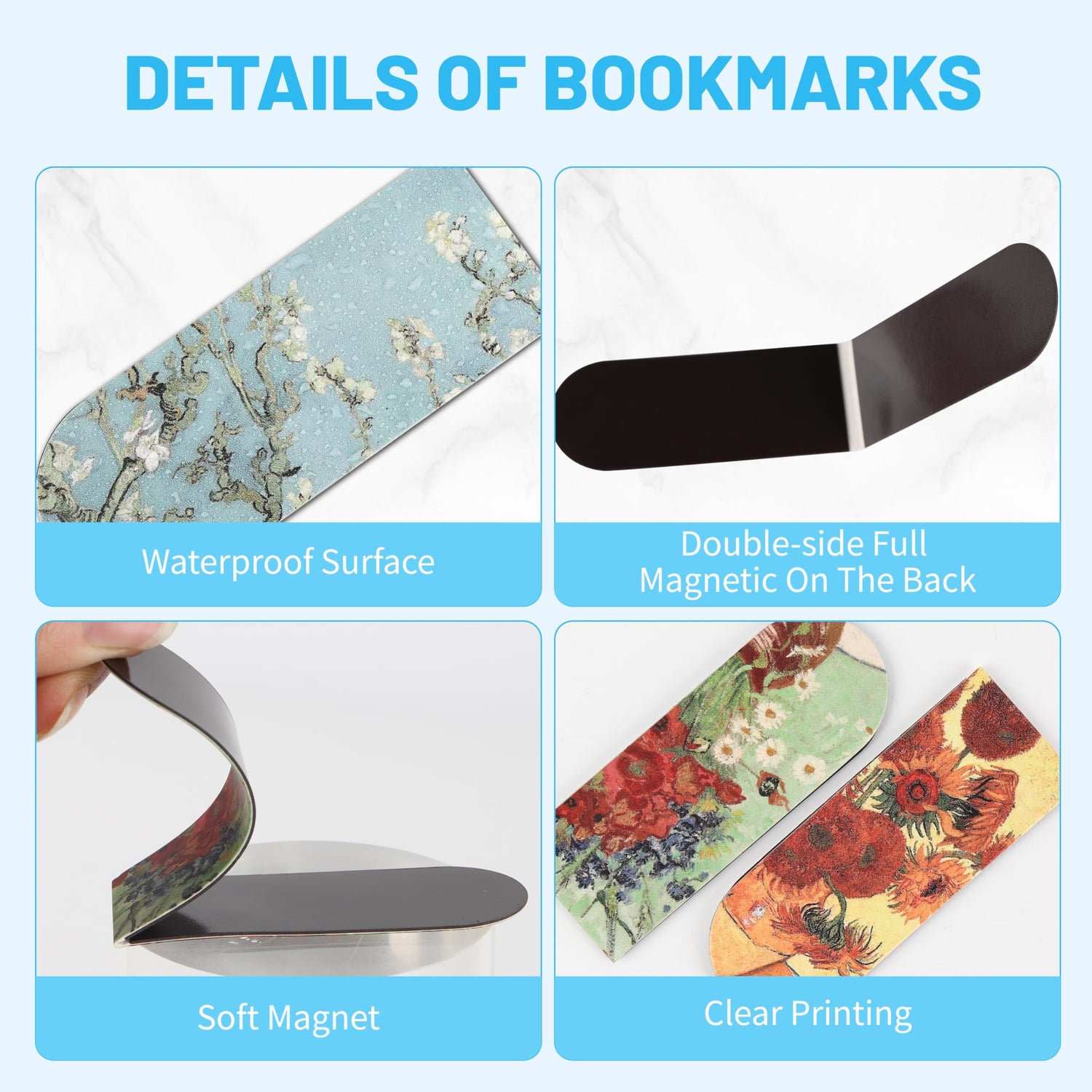 - ๐ Exquisite Design - Our magnetic bookmarks are printed with exquisite patterns. A selection of Van Gogh's and Monet's famous paintings could absolutely bring a pleasant reading experience to the book lovers.