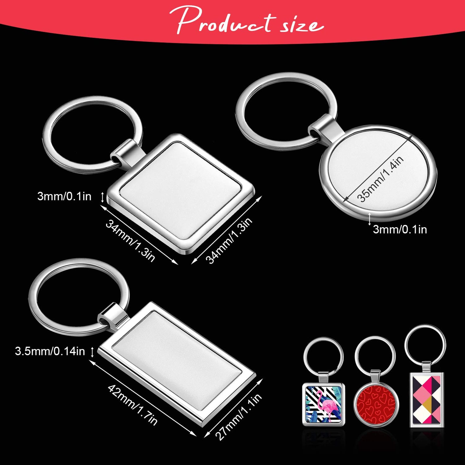 - Portable size: this sublimation keychain is convenient to carry, rectangle blank keychain is 27 x 42 x 3.5 mm/ 1.1 x 1.7 x 0.14 inch, round blank keychain with a diameter of 35 mm/ 1.4 inch, 3 mm/ 0.1 inch thickness, square blank keychain is 34 x 34 x 3 mm/ 1.3 x 1.3 x 0.1 inch; You can use them to decorate keys, bags, handmade presents