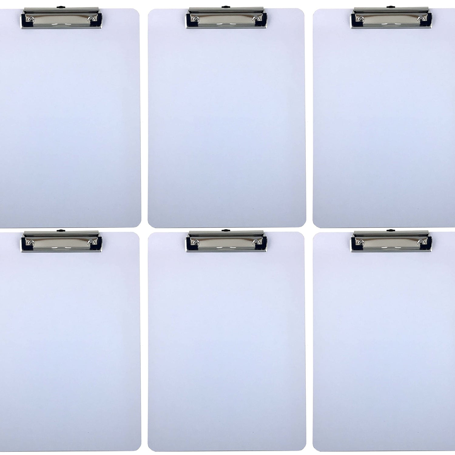 Clipboard Dry Erase Surface 9'' x 12.5'' Letter Size Low Profile Clip Whiteboard (Pack of 6)