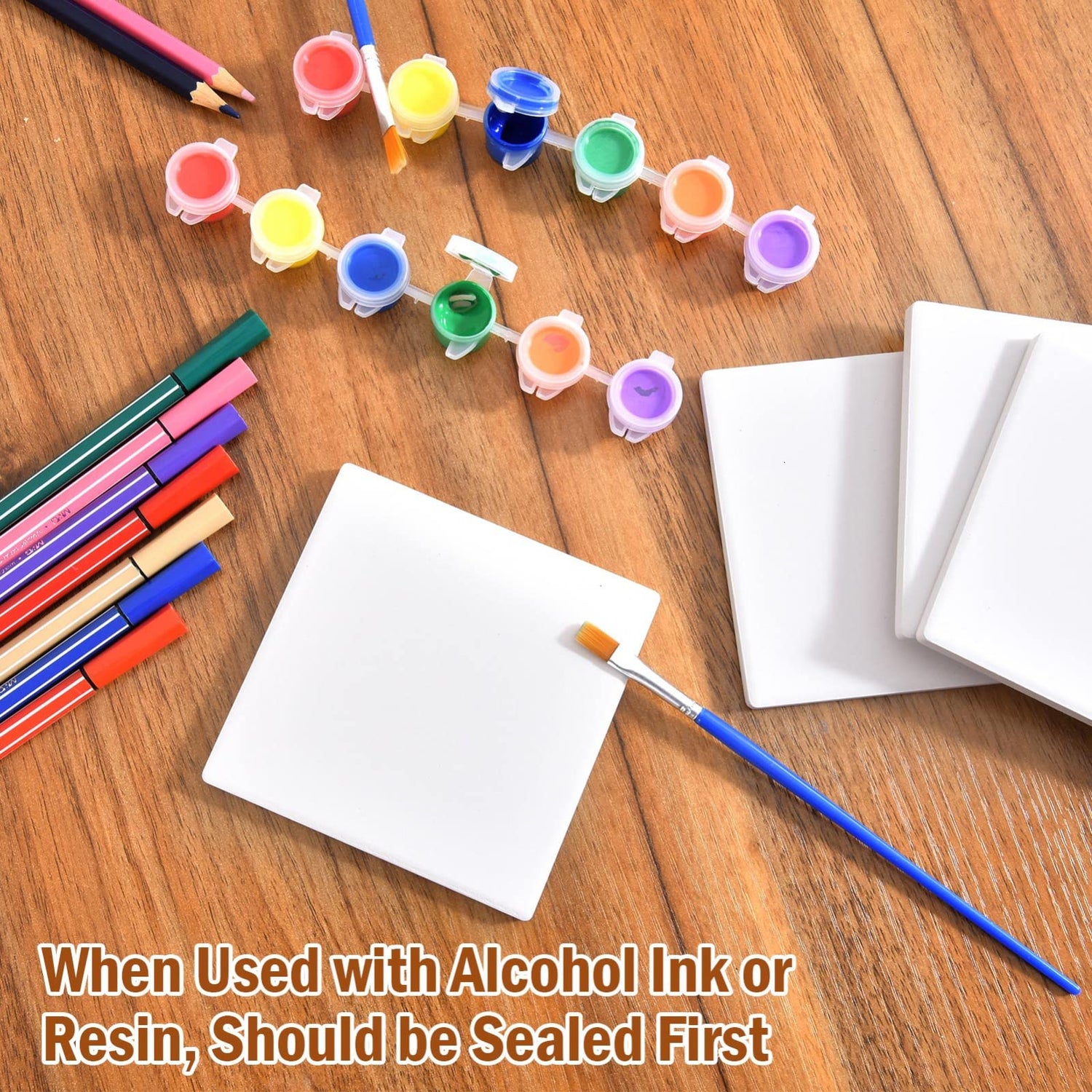 - Create a Unique Set of Coasters: Unglazed ceramic tiles specifically designed to be used for arts and crafts, are perfect for creating your coaster with alcohol ink (requires glazing first), markers, crayons, acrylic paint, resin, and more