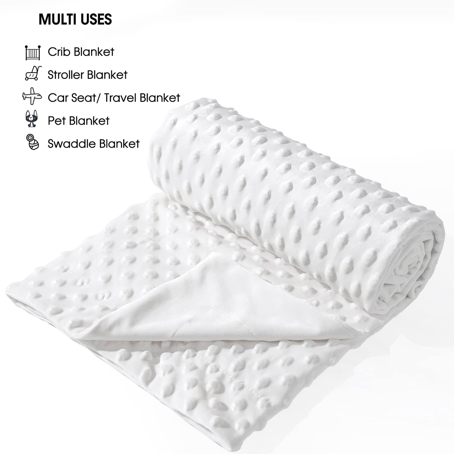 - Luxury Texture: Our blankets are manufactured under strict conditions to ensure a safe and comfortable using experience for your baby. The soft minky fabric is gentle on delicate skin, while the raised plush dots on the front of the blanket will grab your baby's attention and keep them entertained. This combination creates a cozy and relaxing atmosphere that will help keep your child's mood happy and content.