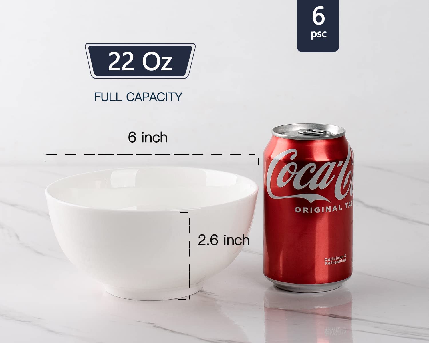 - Perfect Size & Versatile: Soup Bowl top to the rim, 6 x 2.6 inch, holds 22 oz/480 ml. Cereal bowl is big and deep enough to hold cereal, soup without splashing up on you. White porcelain bowls used for everything from morning cereal to late night snacking with ice cream, especially perfect for soup, salad, pasta, oatmeal, and popcorn.