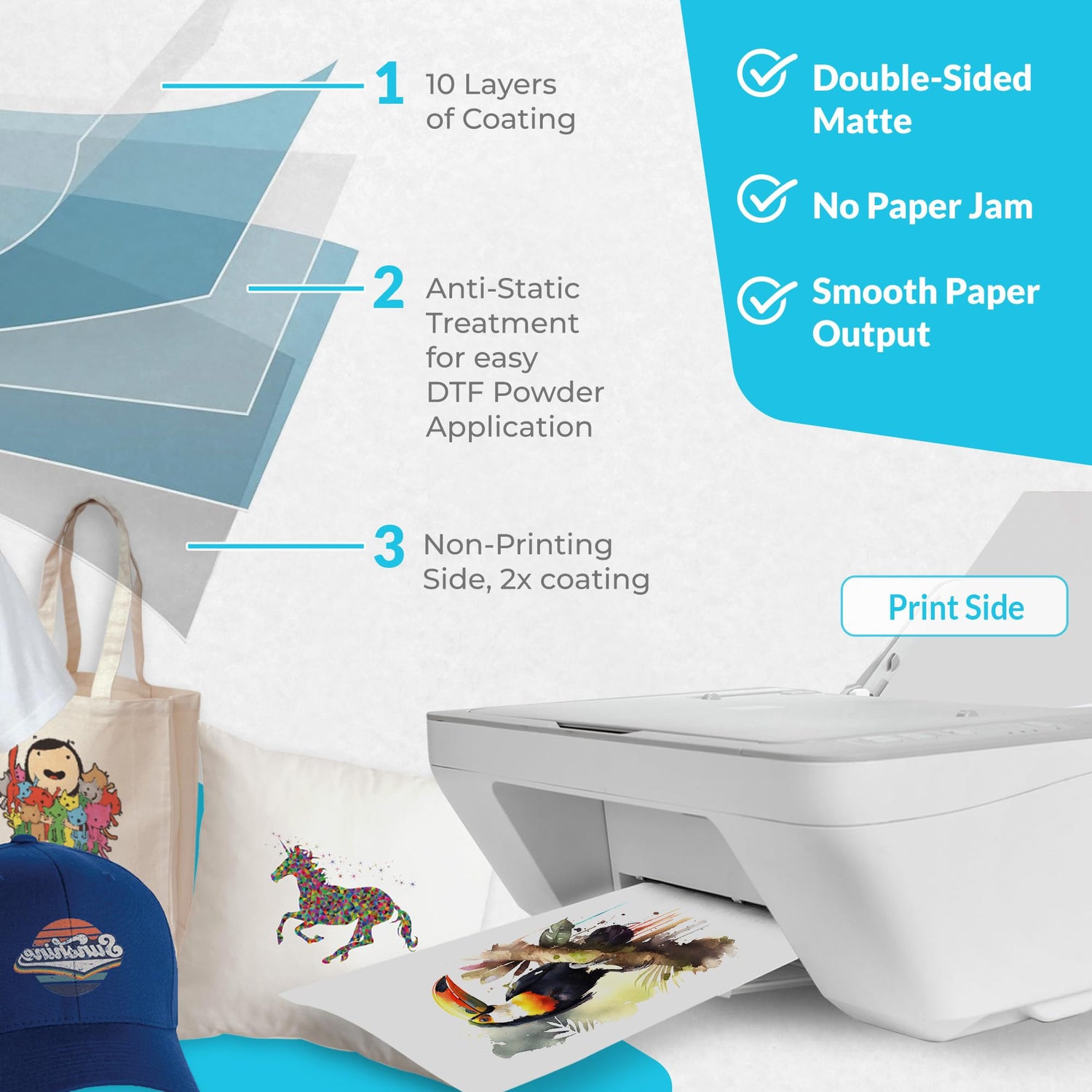 - 15 Sheets 8.5x11 inch DTF Pretreat Paper: 15 sheets white DTF pretreat paper, good for 8.5x11 inch DTF printer. It is a must-have item for DTF printing. The pretreat paper can be cleaned and reused, which is eco-friendly and cost-effective.
