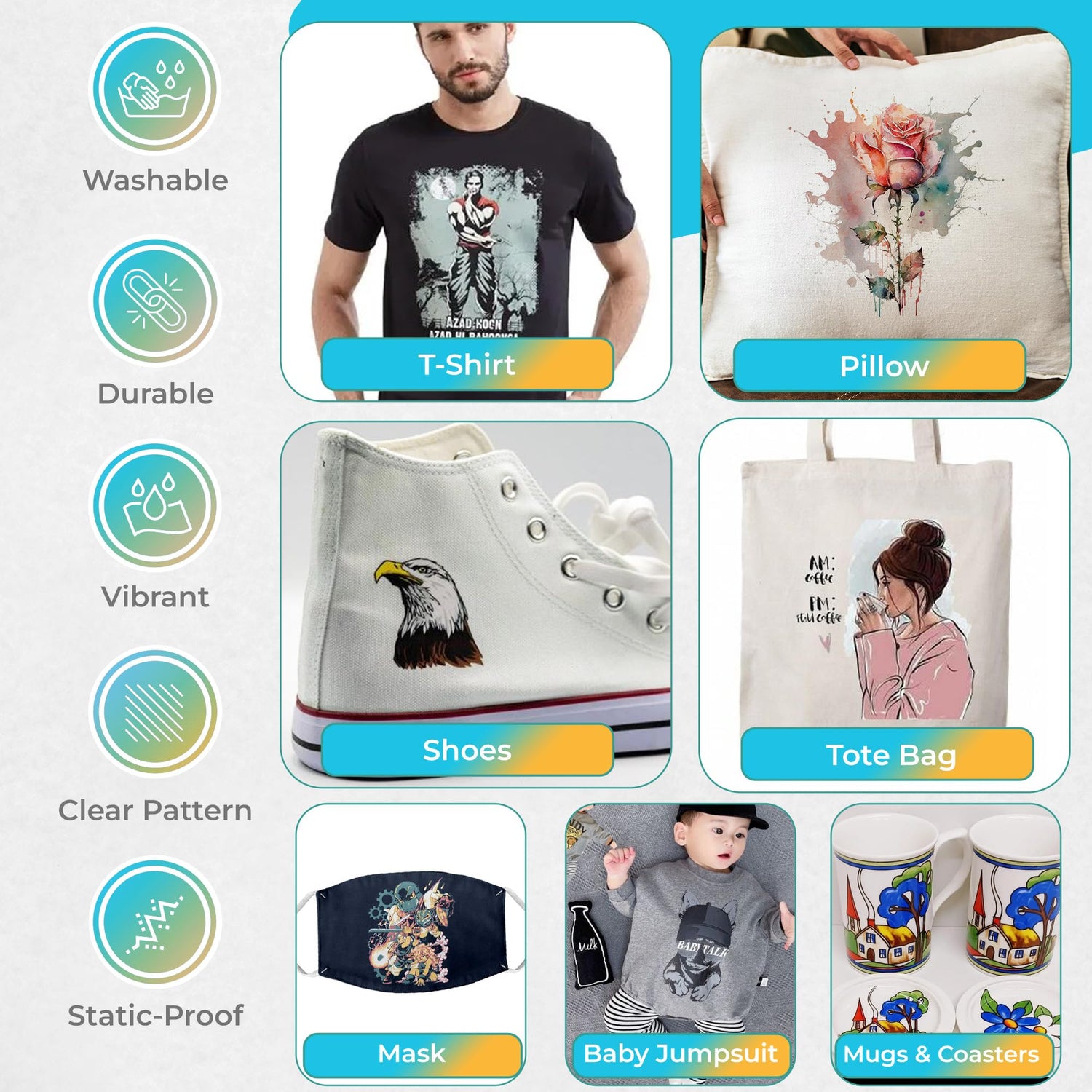 Details: INKCREDIBLE All-in-1 DTF Starter Kit is a great choice for beginners and professionals. This DTF transfer paper for sublimation printing comes with 8.8 OZ White Digital Hot Melt Adhesive and 15 sheets of DTF Pretreat Solution. Our DTF pretreat solution is specially formulated to provide excellent wash fastness, stretch ability, and optimal print release for all DTF printers. Our white DTF transfer paper is compatible with all direct to film printers. The white DTF powder is eco-friendly and odorless, making it safe to use around family and pets. The INKCREDIBLE All-in-1 DTF Transfer Powder Film Kit is perfect for personalizing clothing, accessories, and home decor items. With our easy-to-use DTF transfer paper and adhesive, you can create custom designs with your logo, images, or text. Our DTF transfer paper is perfect for small business owners, crafters, and individuals who want to create unique and personalized items.
