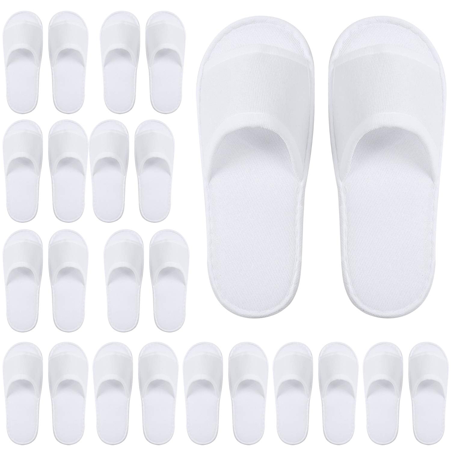 Elcoho 12 Pairs Open Toe Spa Slippers White Spa Hotel Guest Slippers for Spa, Party Guest, Hotel and Travel, Fits Most Men and Women