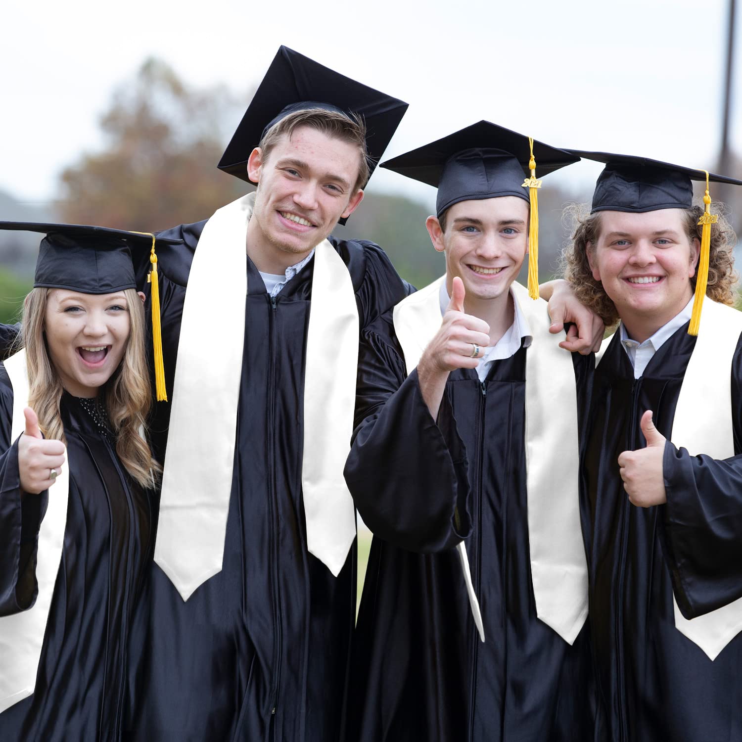 Endea White Graduation Stole - Plain Color, Unisex, 62" Graduation Sash (White)