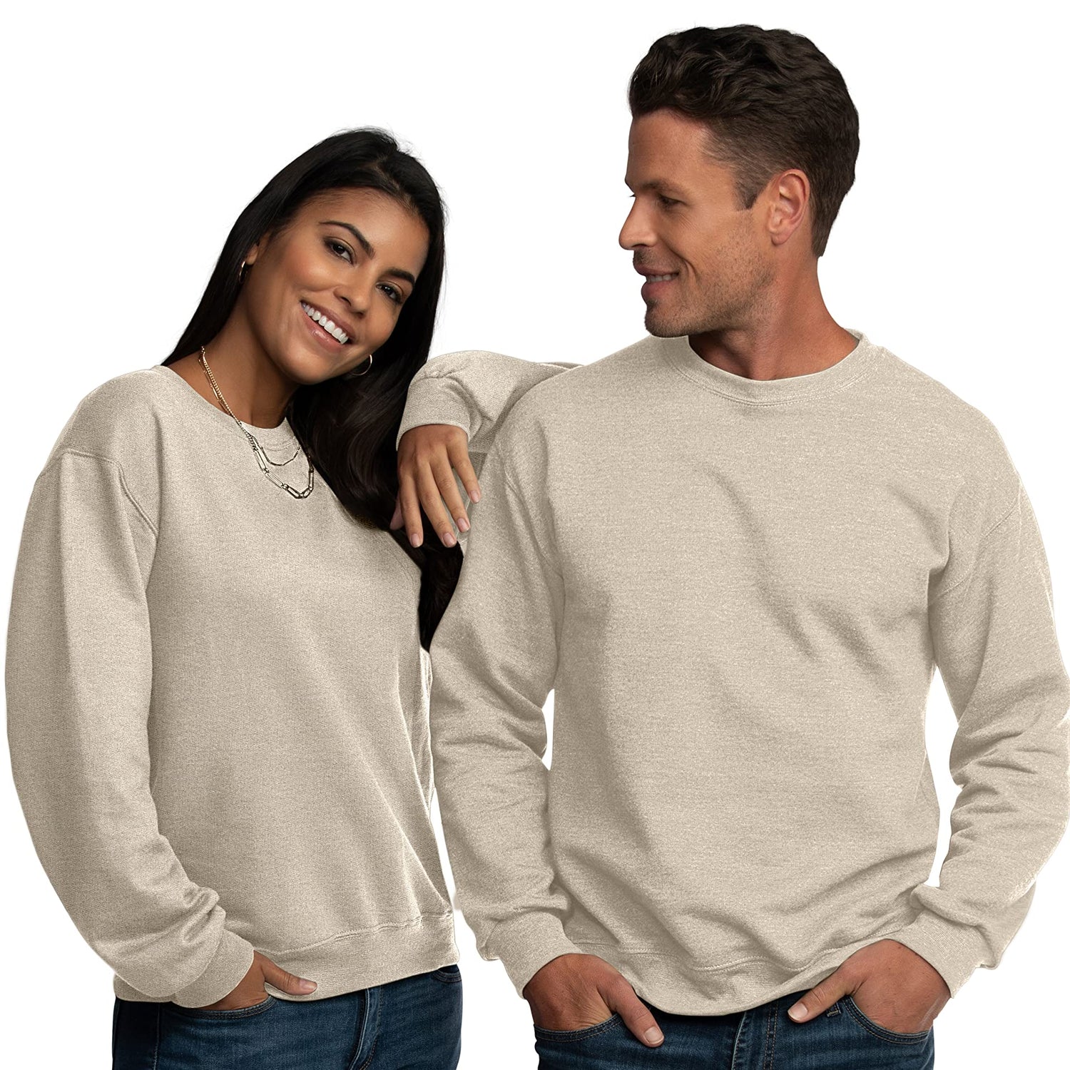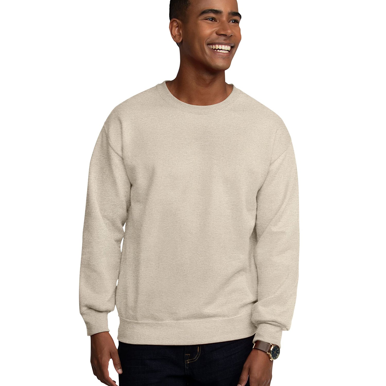 Fruit of the Loom Men's Eversoft Fleece Crewneck Sweatshirts, Moisture Wicking & Breathable, Sizes S-4X, Khaki Heather, Small