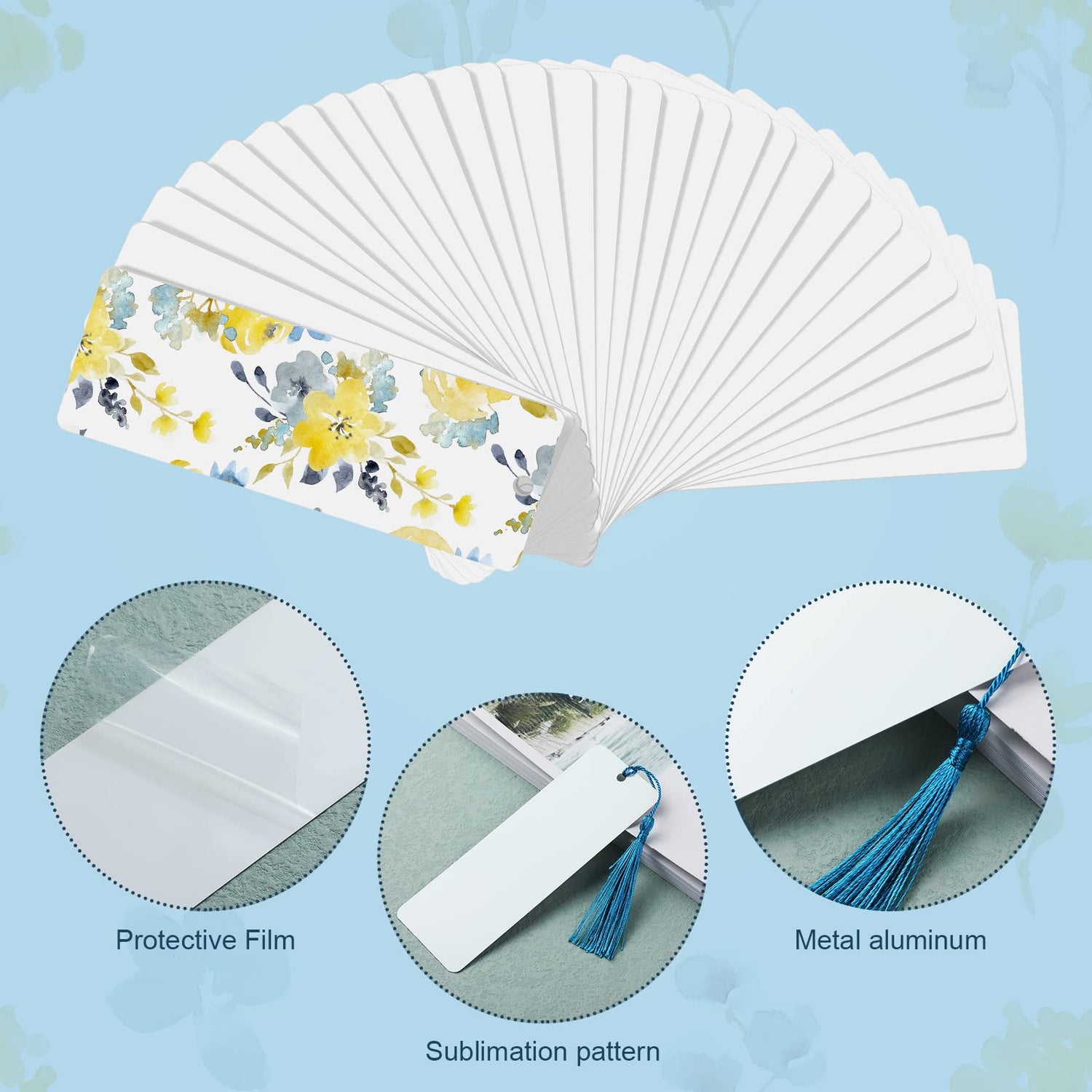 Fumete 30 Pieces Sublimation Blank Bookmark Heat Transfer Metal Aluminum DIY Bookmark with Hole and Colorful Tassels for Crafts, Birthday Wedding, Sublimation Blank Keychains, Single Sided Printing