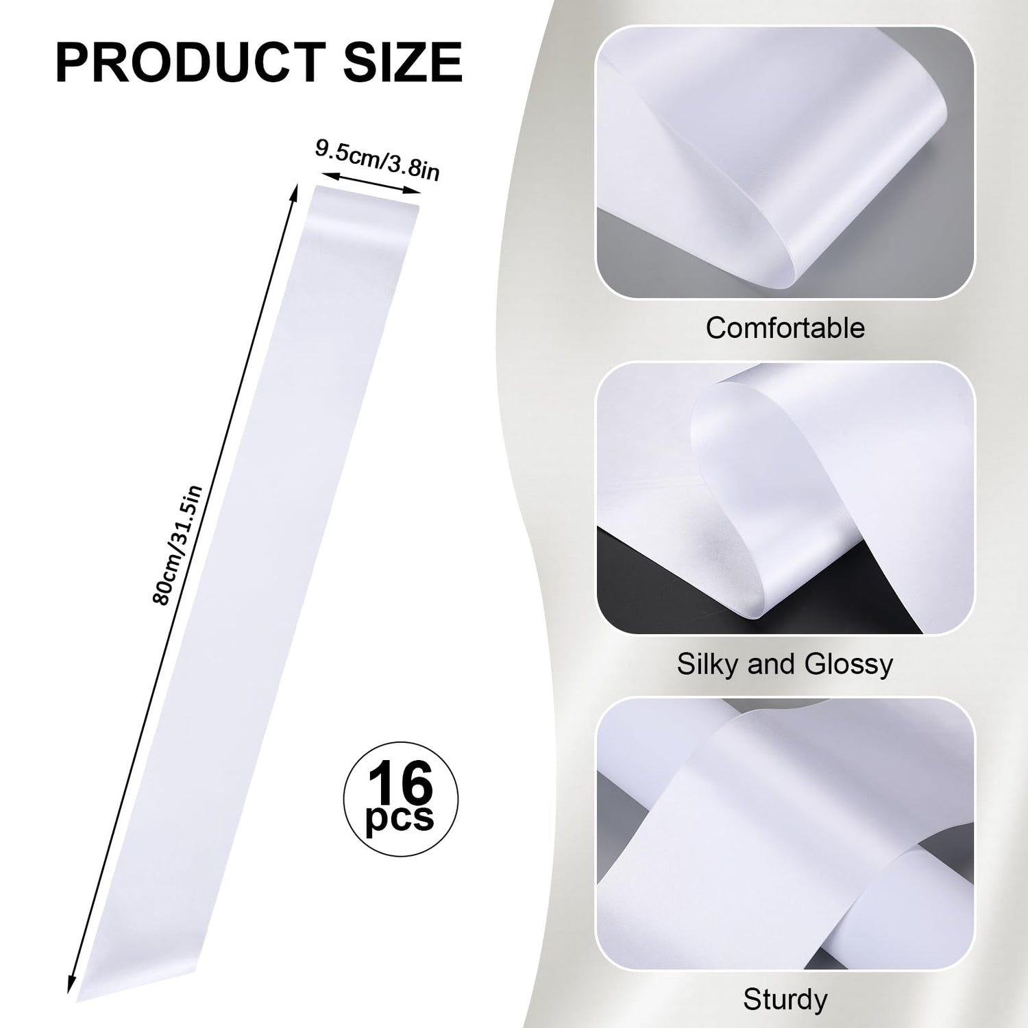 • WHAT YOU WILL RECEIVE: You will receive 16pcs white sashes, plenty of quantity, can meet your daily festival or party needs, can make you more bright in the party crowd