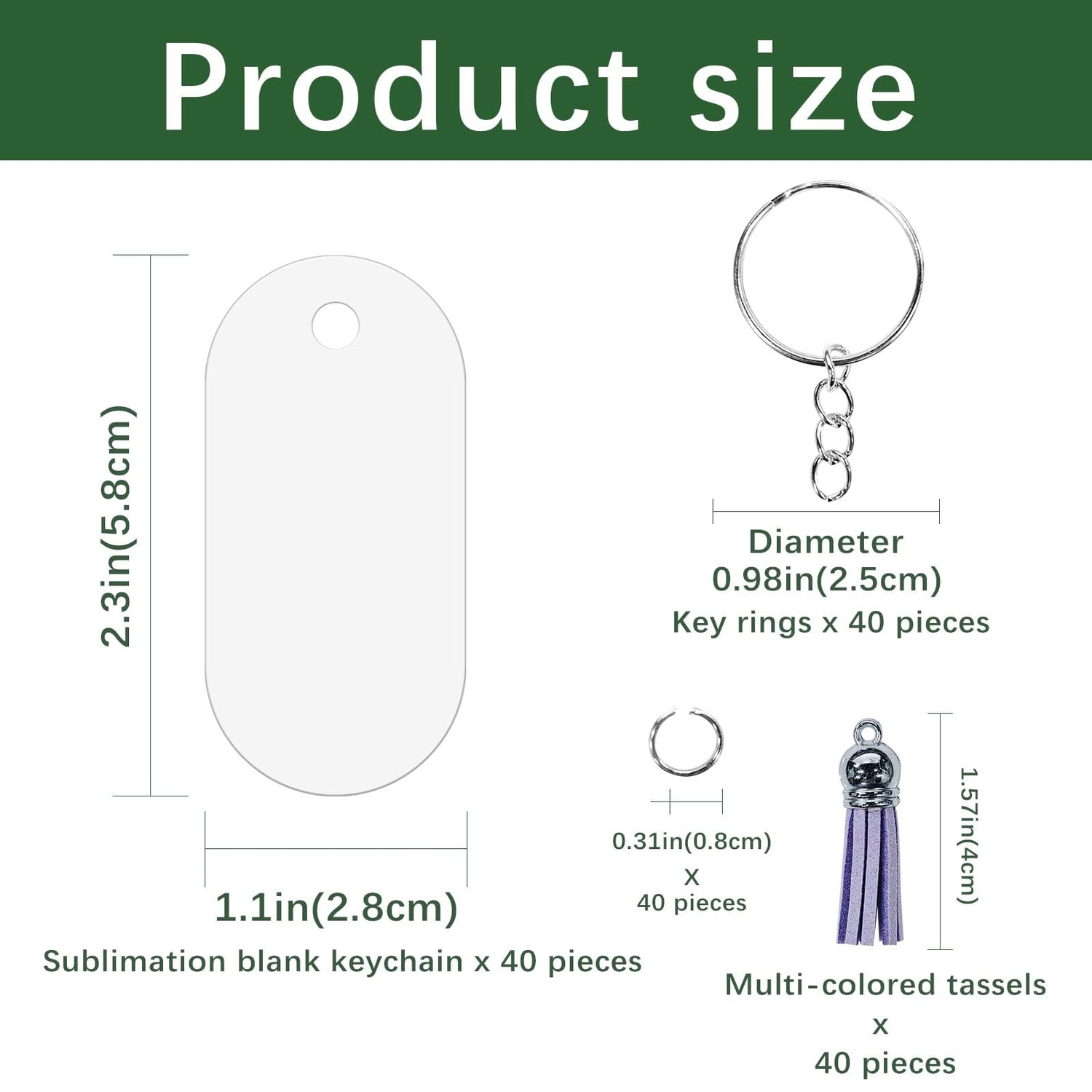 • 【Package Contents】 A Collection of 160 Pieces Sublimation small keychain, Including 40 PCS Sublimation Keychain Blanks, 40 PCS colorful tassels, 40 PCS jump rings, 40 key rings