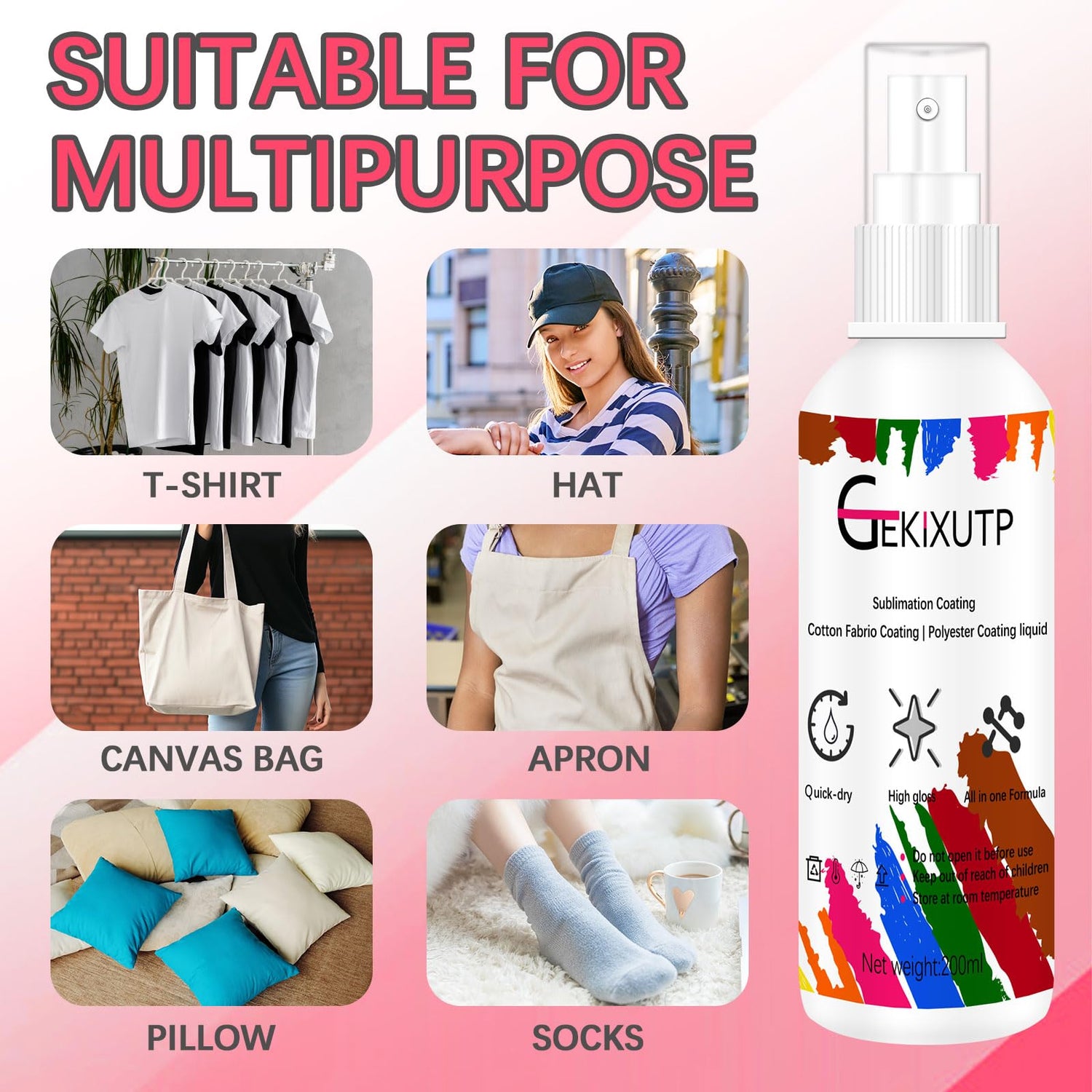 GEKIXUTP 200 ml Sublimation Spray for Cotton Tshirts,Sublimation Coating Spray for T-Shirts,Canvas, Polyester Fabric,Quick Dry, High Gloss,Polyester Spray for Sublimation