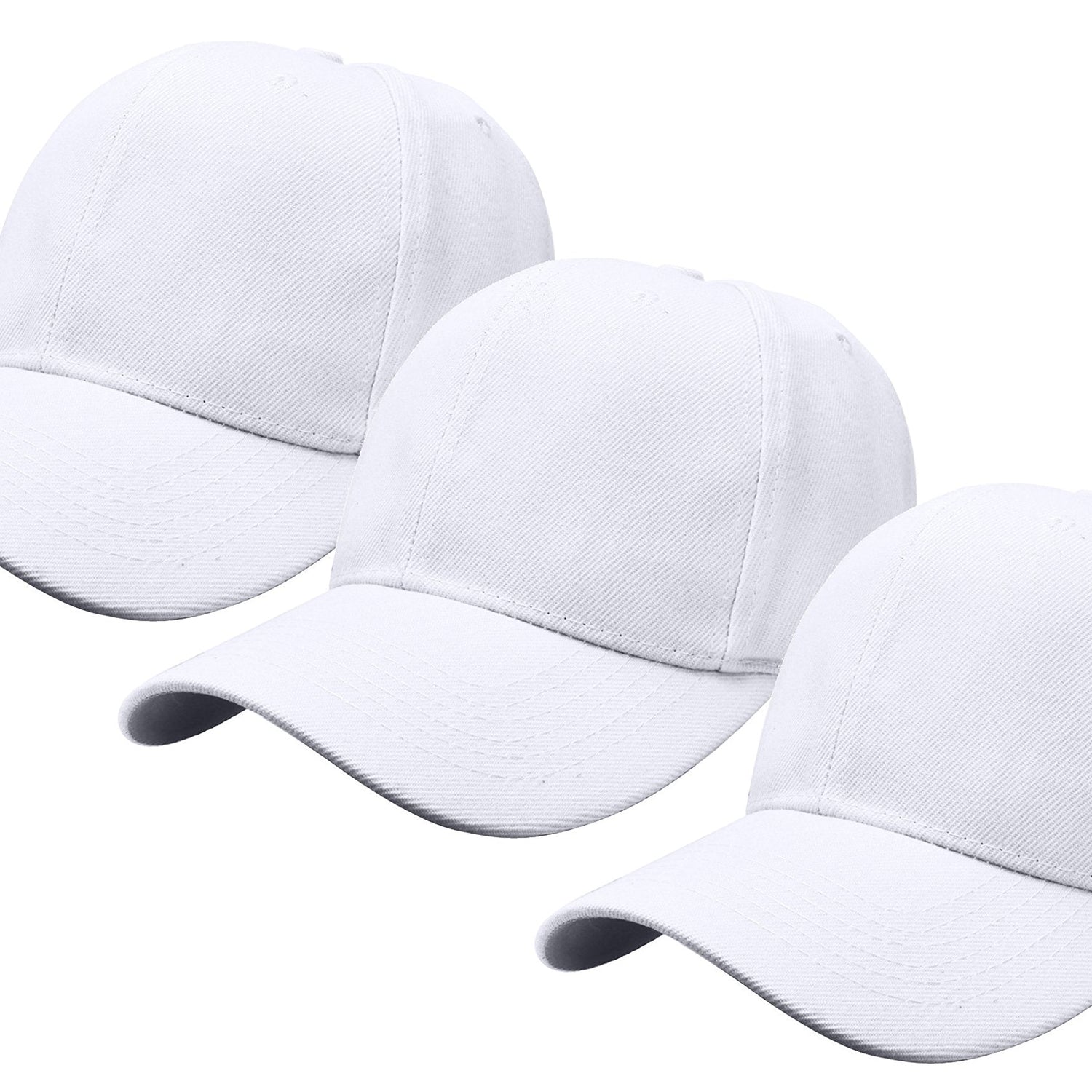 Gelante Plain Blank Baseball Caps Adjustable Back Strap 3 PC-001-White