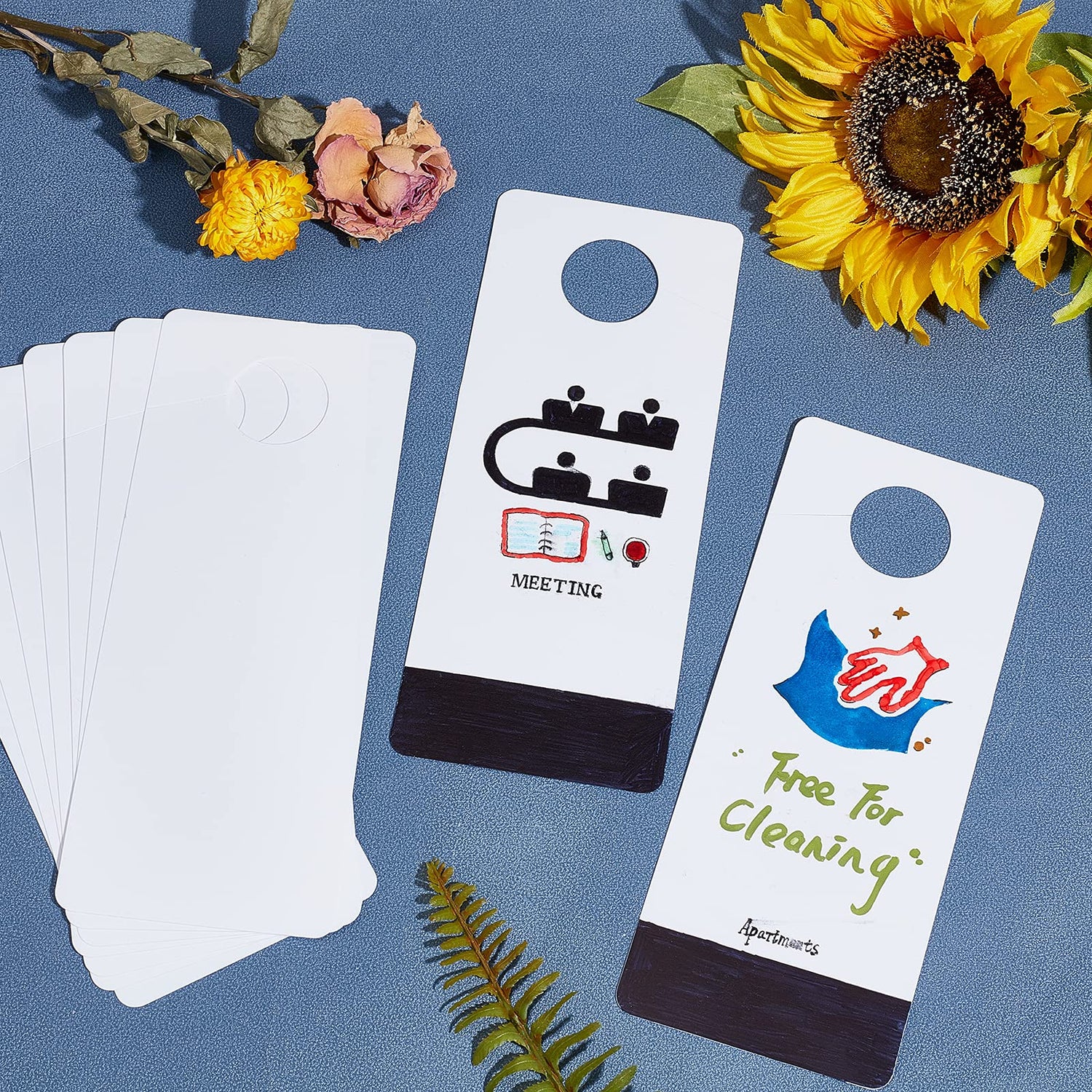 GLOBLELAND 30Pcs 8x3.23Inch PVC Door Knob Hangers Blank Door Signs to Write Your Own Messages for DIY Craft Home Office Hotel Restaurant Decoration