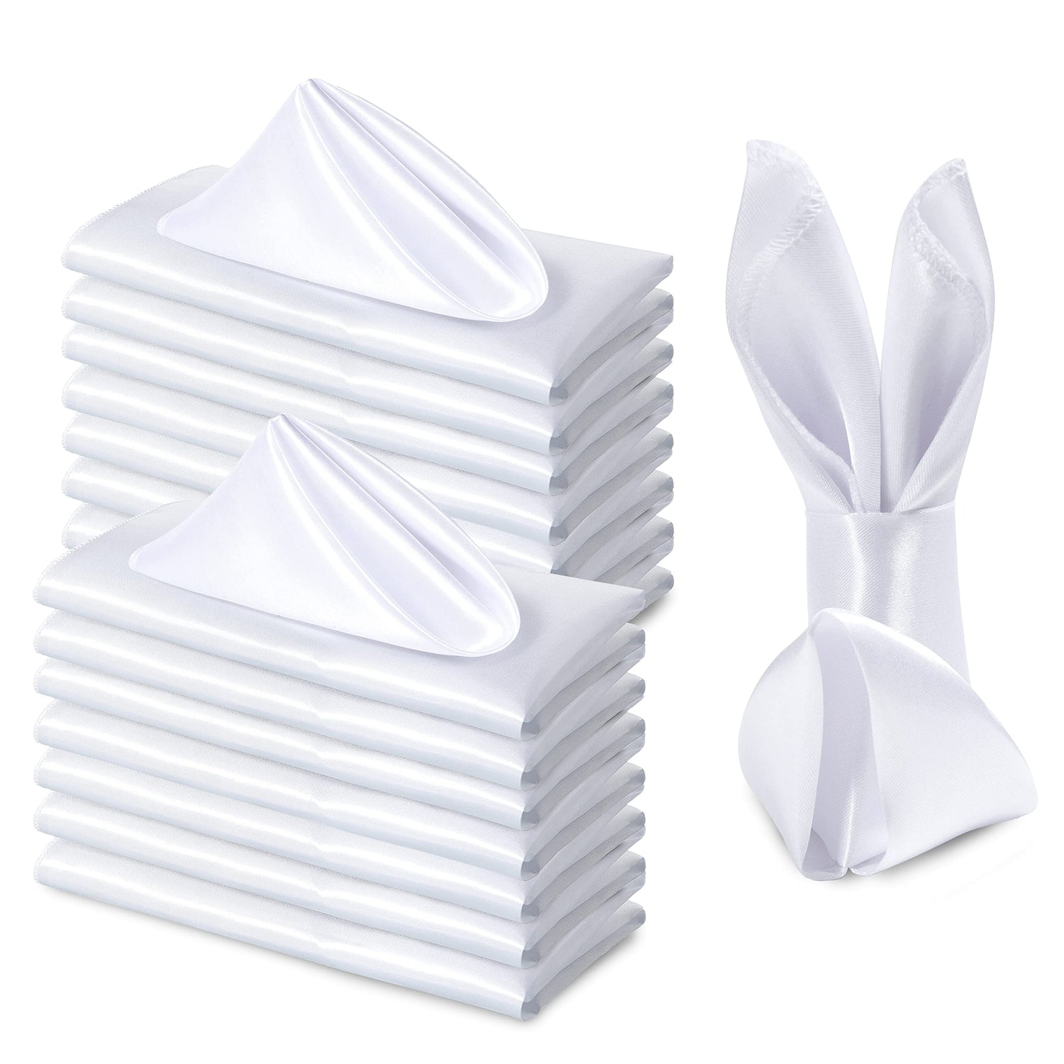 • PACKAGE CONTENT - 12 x White Satin Cloth Napkins, Size: 20 inch x 20 inch / 50cm x 50cm (W * L), bright napkins suitable for round table, rectangle table, dining table, coffee table, buffet table. The wedding reception napkins can also be used as decoration of hotel, family restaurant, kitchen.