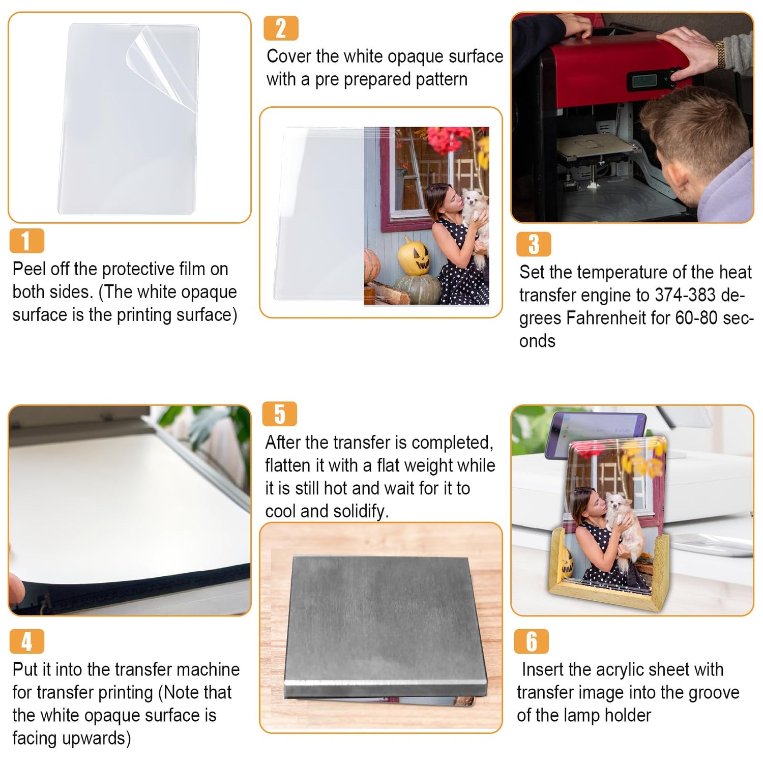 • Easy Printing Process: Printing on these frames is a breeze. Simply set your heat press machine to 374°F and 180 seconds, and you're good to go. The backside of the sublimation LED photo lights is white and designed for printing. There's no need to mirror the design on sublimation paper
