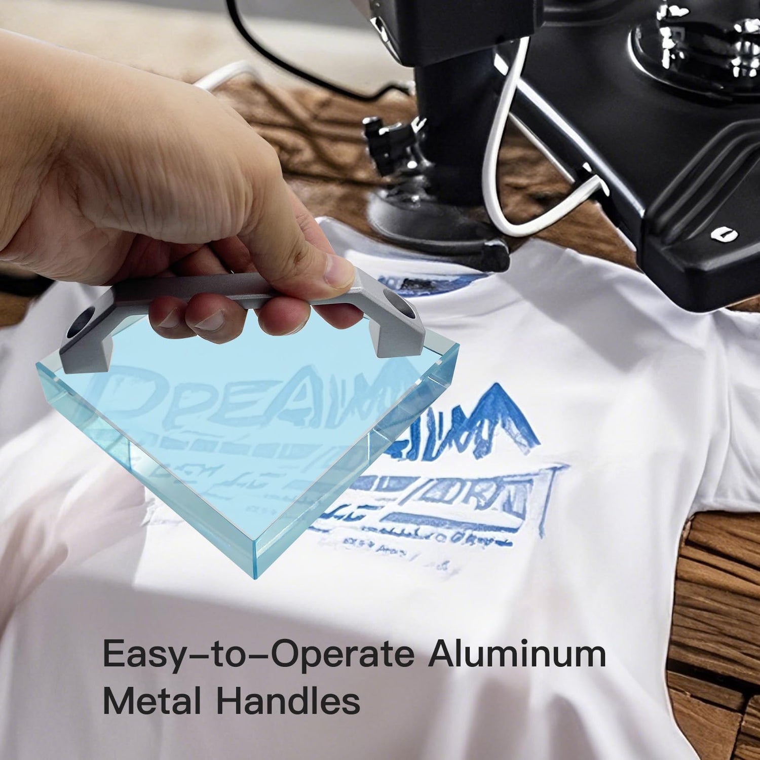 - Quality materials and design: Premium heat-absorbing clear material with easy-to-operate aluminum metal handles. The has a 4.7" x 4.7" heat absorbing coverage area. Keeping you on top of your hot press work and getting the job done efficiently