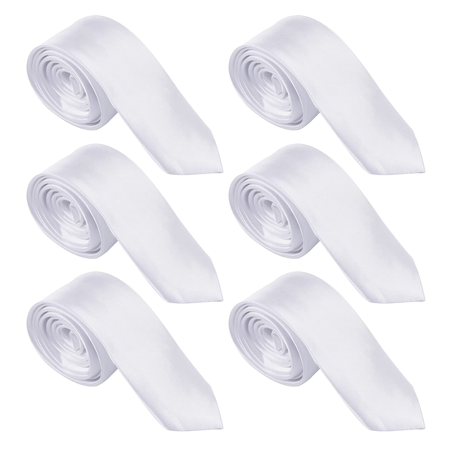 ICObuty Men Satin Tie 2 inch Skinny Solid Color Necktie 6 pack Wholesale Event(White)