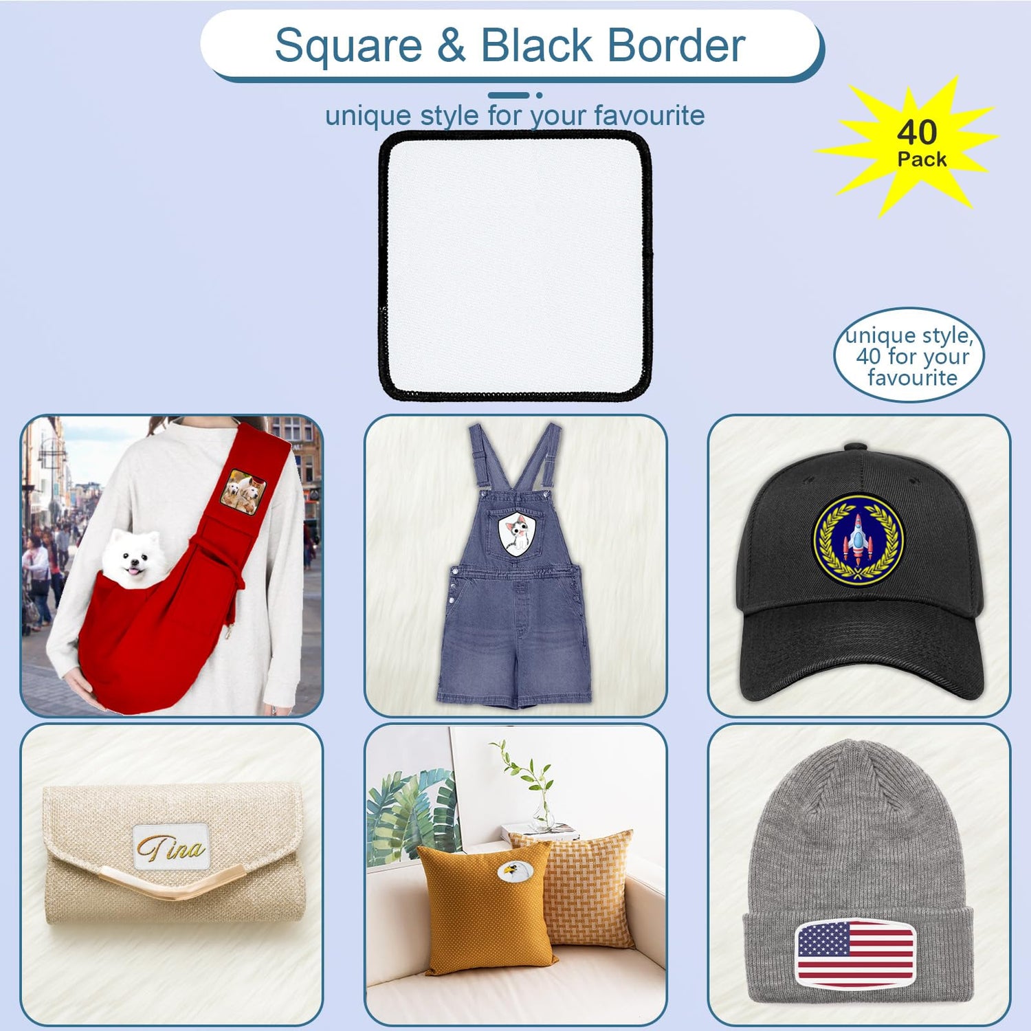 - ✅BIG SIZE with BLACK & WHITE BORDER - It is 40 pieces square patches with black embroidered border, one shape in bulk for you to choose for various items. Big size of 2.96"x2.96" can be easy to use for sublimating pictures. We also have other bulk QTY & styles sets which can meet your different needs, share them with your friends to enjoy DIY fun