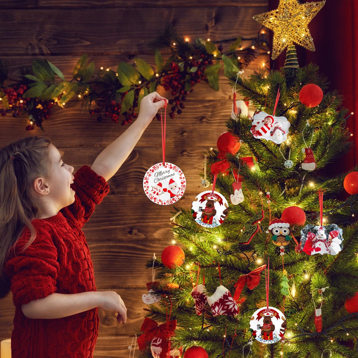 - What in the Package: the package includes 48 sublimation blank ornaments, consisting of 24 round ones with a diameter of 8 cm/ 3.15 in and 24 wave shaped ones sized at 10 x 7 cm/ 3.9 x 2.8 in; Each blank comes with a red handing cord, so you can hang them on your Christmas tree or elsewhere