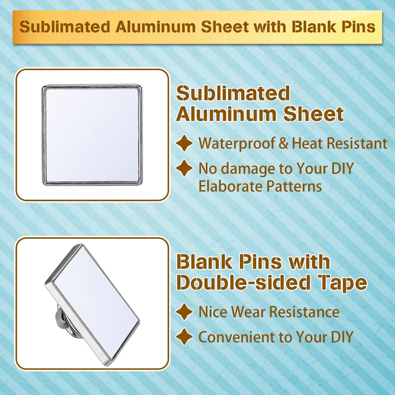 - Enough to Apply and Share: the package comes with 50 pieces of sublimation blank pins with double sided tape, and 50 pieces of sublimation aluminum sheet, a convenient DIY matching set to fit your badge making needs