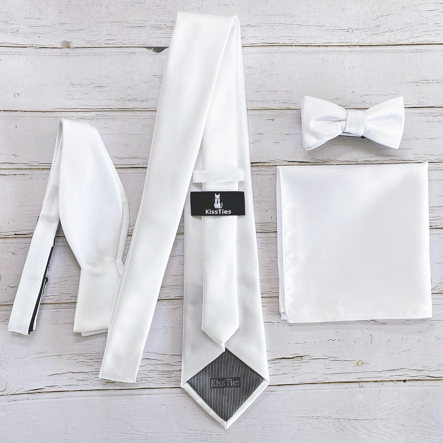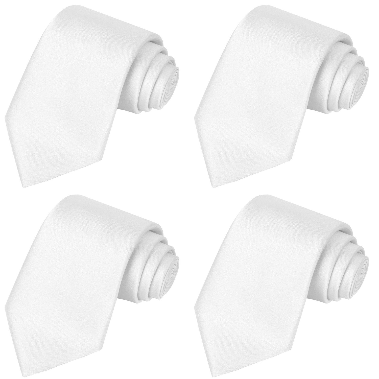 KissTies 4PCS Ties For Men White Solid Tie Wedding Neckties + 1 Gift Box